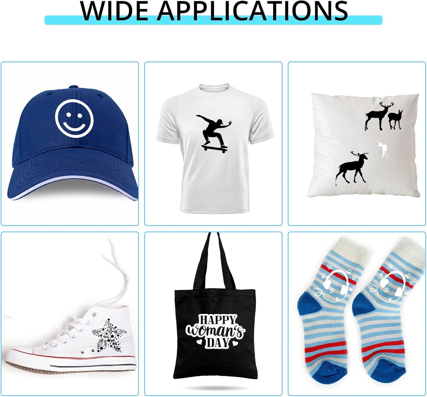 USE WIDELY HTV: Your shirt, tote bags, sportswear, aprons, hat and pillow, which used our htv vinyl, make you stand out from the crowd. Heat transfer vinyl rolls are suitable for athletic mesh fabrics, Cotton, polyester and cotton blend, lycra/spandex, textiles etc.Our black iron vinyl and white iron vinyl materials are safe to wear