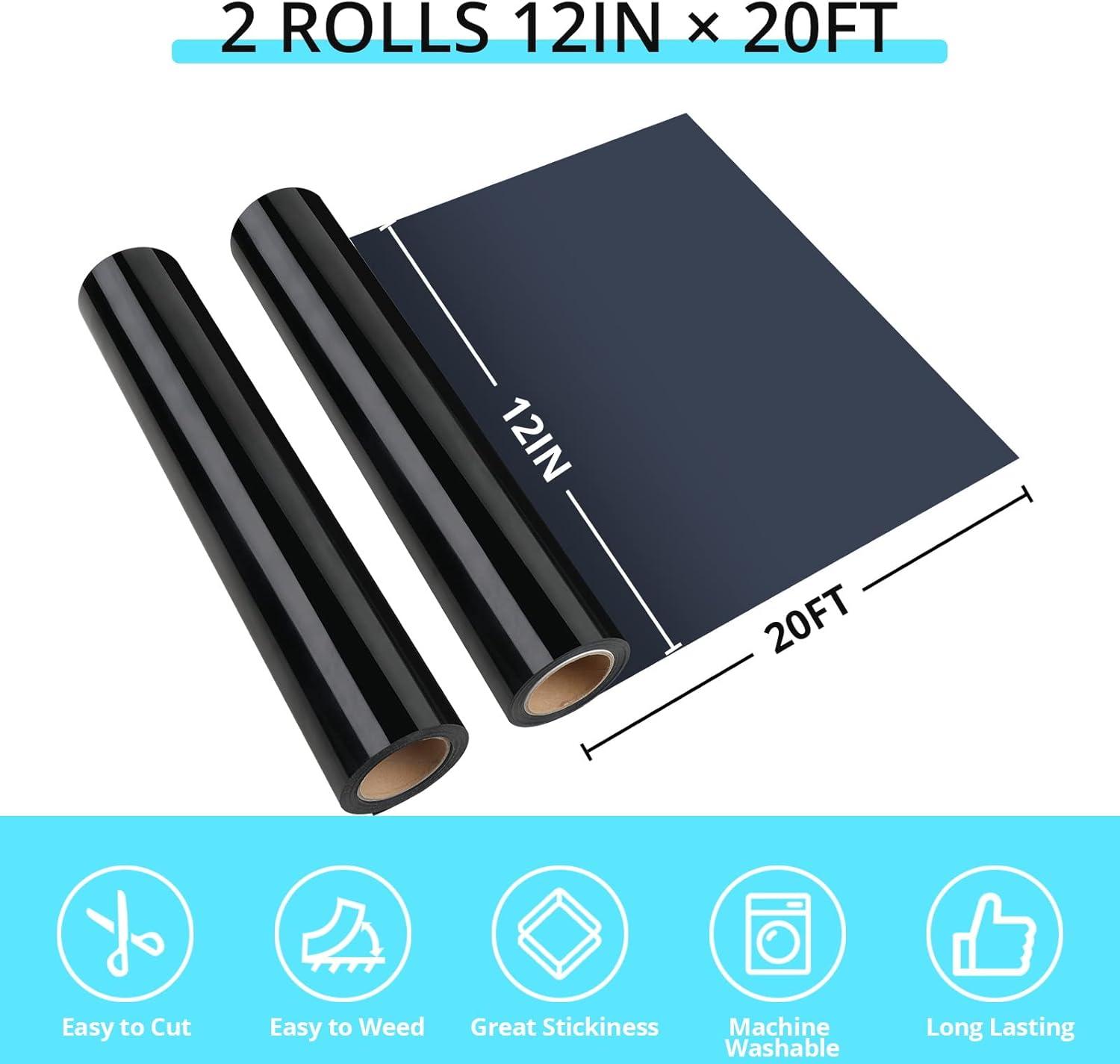 HTVRONT Heat Transfer Vinyl Black & White HTV Vinyl Rolls -12 x 20ft HTV Vinyl for Shirts, Black Iron on Vinyl for All Cutting Machines – Easy to Cut & Weed for Heat Transfer Design (Black&White)(C-Black)