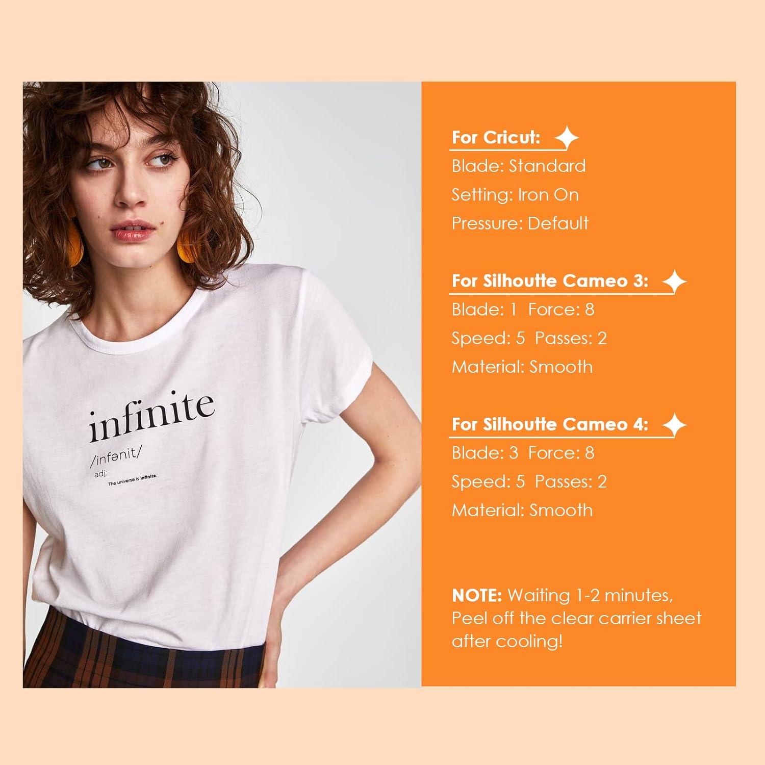EASY TO CUT & WEED & TRANSFER: Our white HTV black heat transfer vinyl will save your time which you may waste on each image or letter, because you can cut and weed easily through the designs just right.The white htv vinyl is sensitive to temperature and pressure, which can be heat transferred on any t-shirt easily