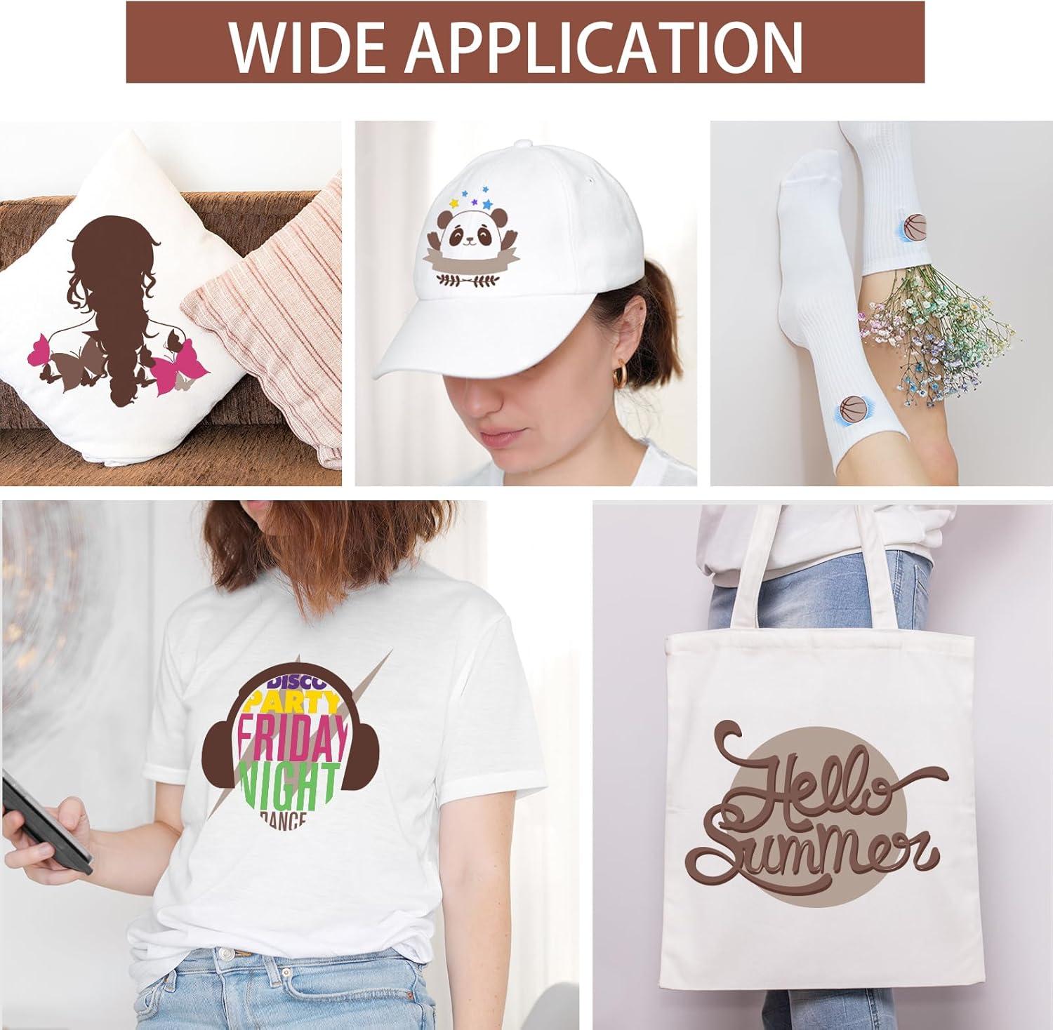 USE WIDELY HTV: Your shirt, tote bags, sportswear, aprons, hat and pillow, which used our htv vinyl, make you stand out from the crowd. Heat transfer vinyl rolls are suitable for athletic mesh fabrics, Cotton, polyester and cotton blend, lycra/spandex, textiles etc.Our black iron vinyl and white iron vinyl materials are safe to wear