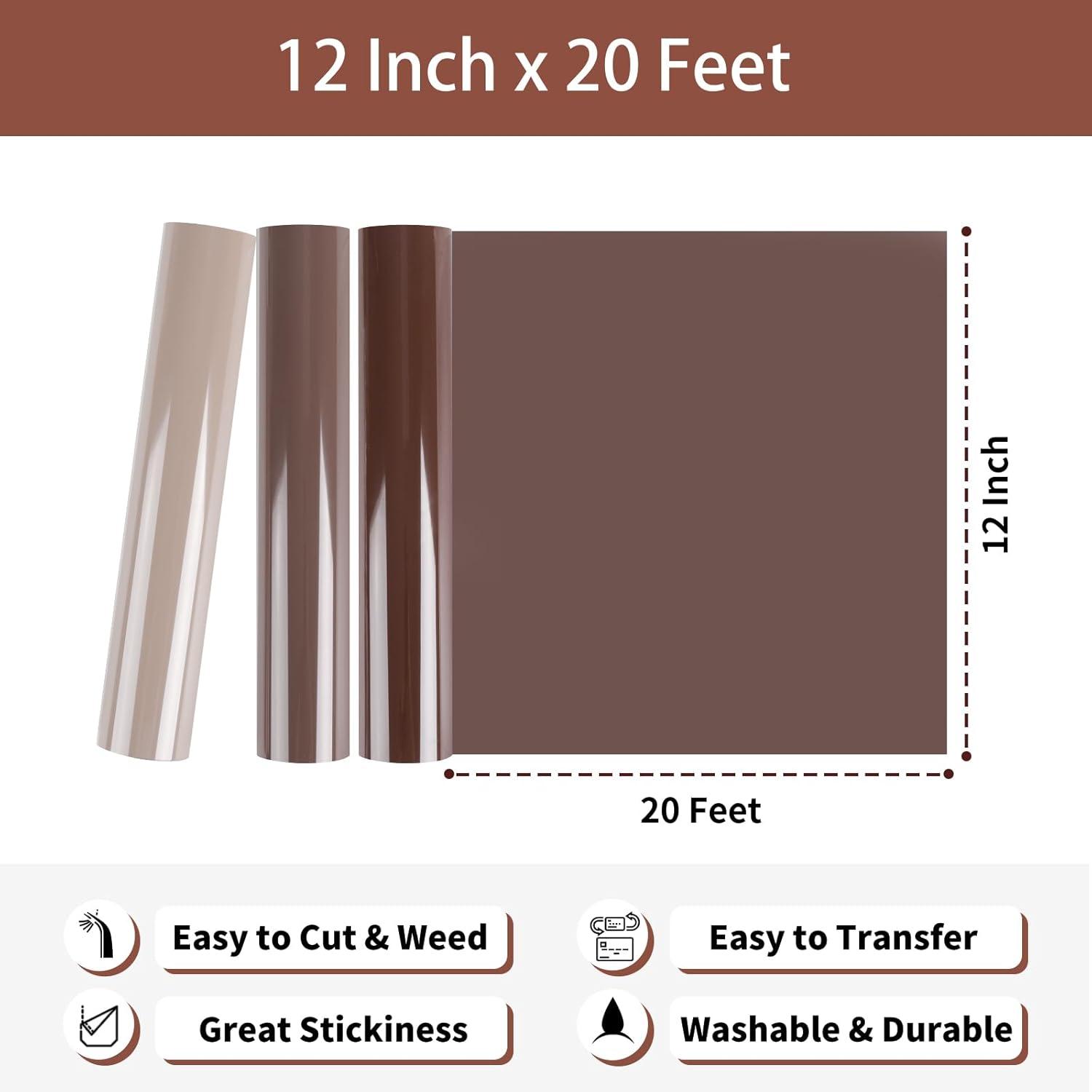 HTVRONT Heat Transfer Vinyl Black & White HTV Vinyl Rolls -12 x 20ft HTV Vinyl for Shirts, Black Iron on Vinyl for All Cutting Machines - Easy to Cut & Weed for Heat Transfer Design (Black&White)(C-Khaki)