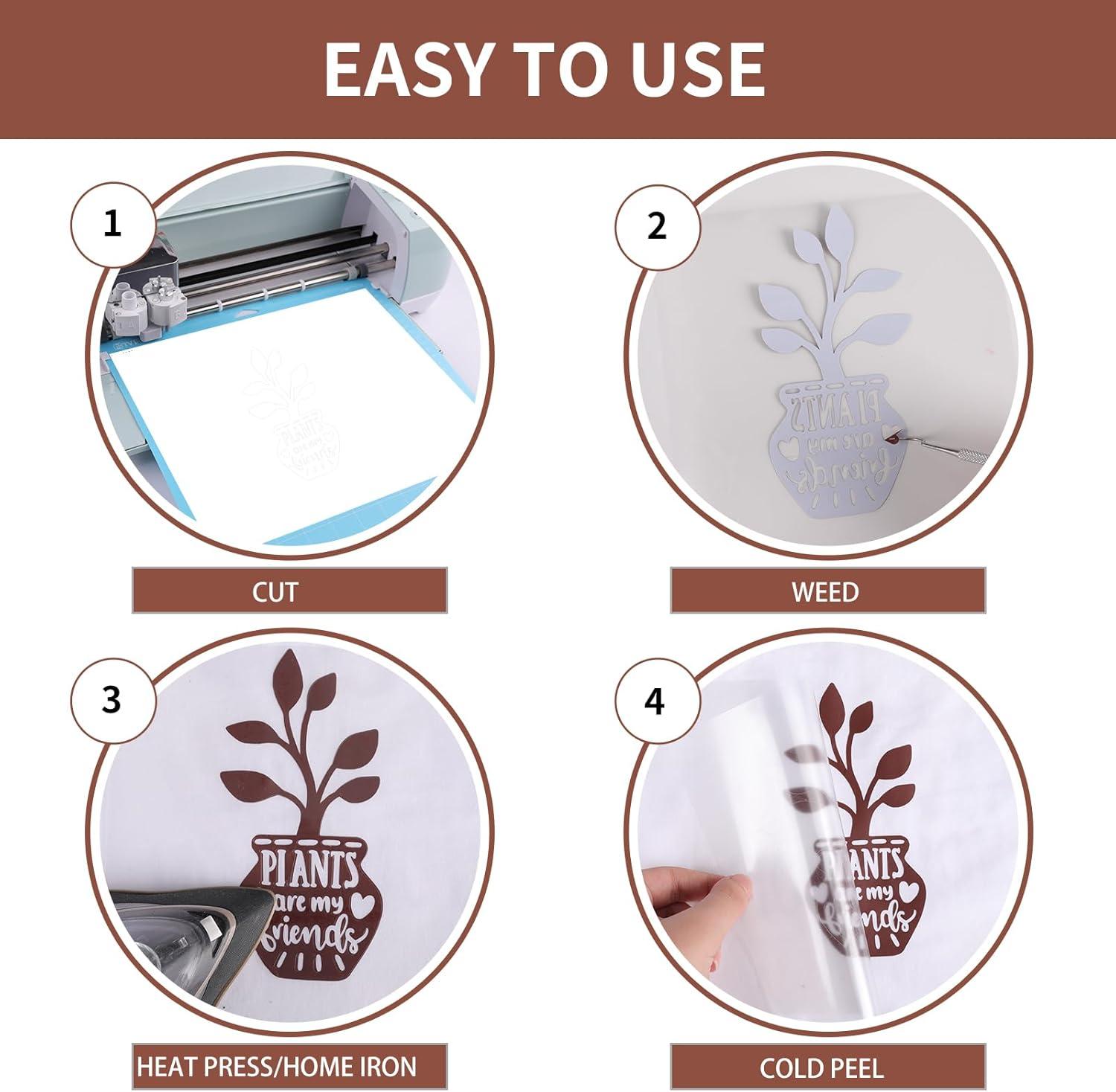 EASY TO CUT & WEED & TRANSFER: Our white HTV black heat transfer vinyl will save your time which you may waste on each image or letter, because you can cut and weed easily through the designs just right.The white htv vinyl is sensitive to temperature and pressure, which can be heat transferred on any t-shirt easily