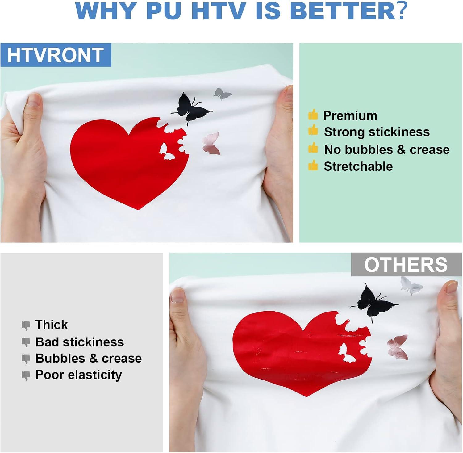 EASY TO CUT & WEED & TRANSFER: Our white HTV black heat transfer vinyl will save your time which you may waste on each image or letter, because you can cut and weed easily through the designs just right.The white htv vinyl is sensitive to temperature and pressure, which can be heat transferred on any t-shirt easily