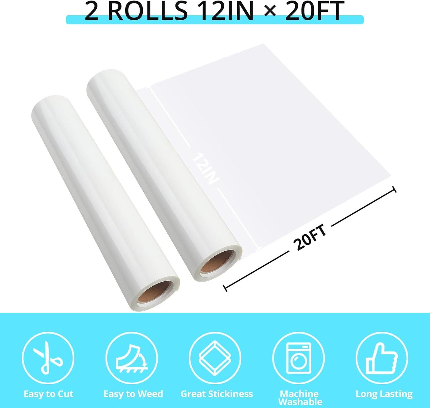 2 ROLLS 12 INCHES x 20 FEET: Our htv rolls comes with 2 rolls of heat transfer vinyl in black and white colors, each roll is 12 inches by 20 feet. The white htv and black htv are easy and convenient to cut into different size of art designs or logos or letters and perfect for 12×12″ and 12×24″ cutting mats. Our htv vinyl are compatible for use with most cutting machines