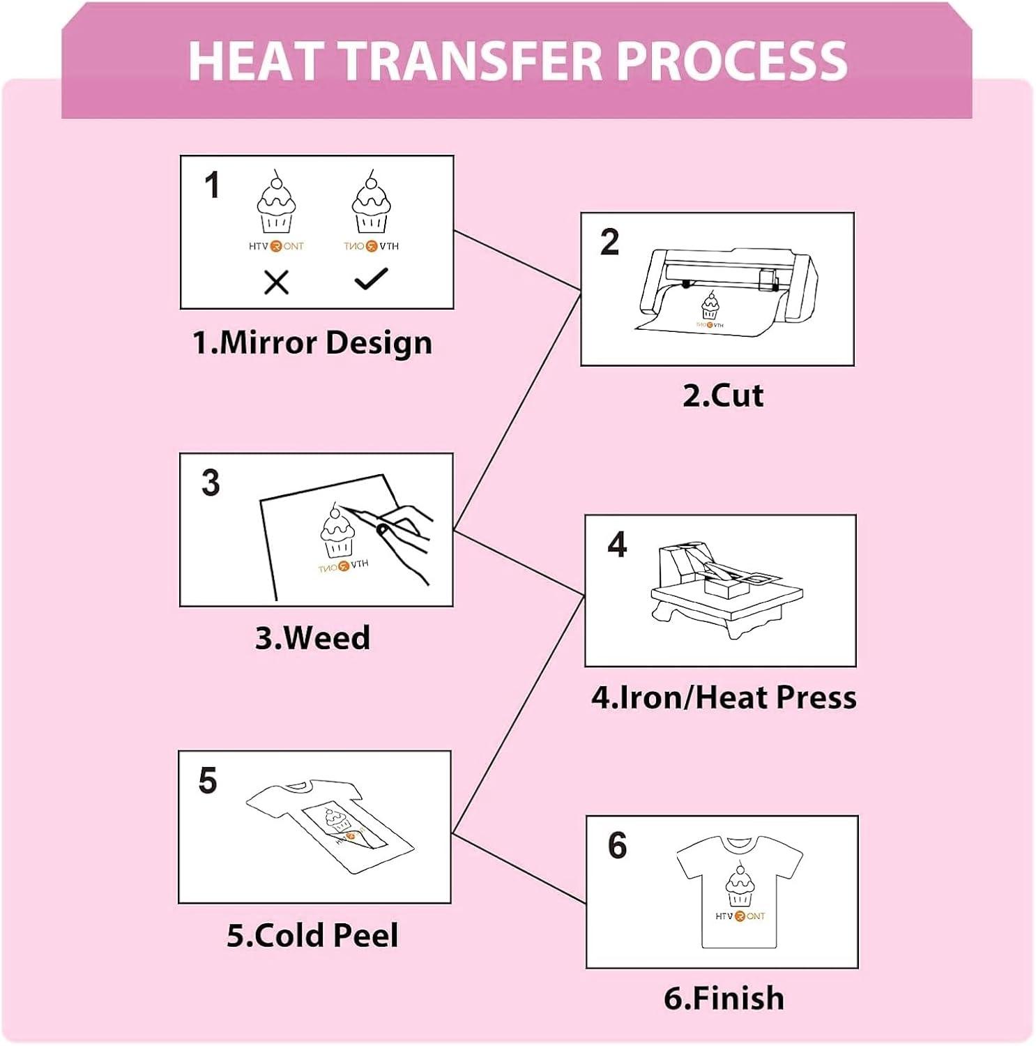 EASY TO CUT & WEED & TRANSFER: Our white HTV black heat transfer vinyl will save your time which you may waste on each image or letter, because you can cut and weed easily through the designs just right.The white htv vinyl is sensitive to temperature and pressure, which can be heat transferred on any t-shirt easily