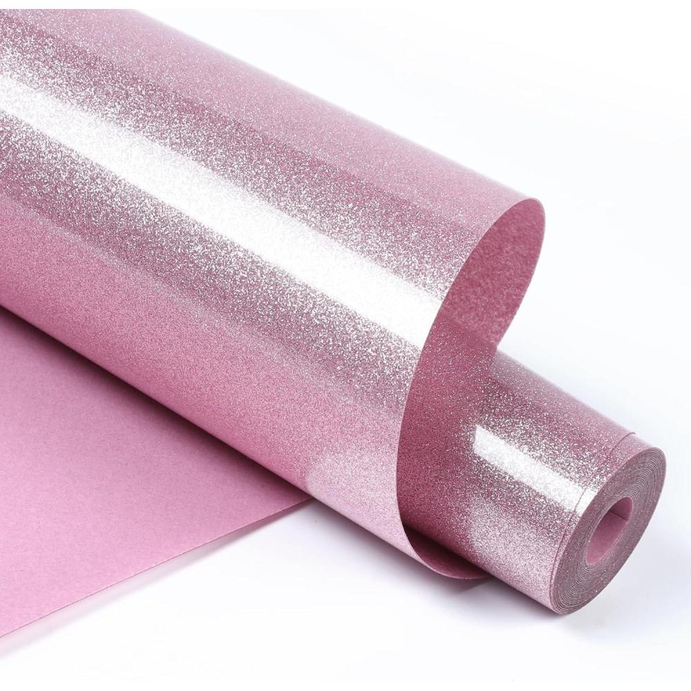 HTVRONT Heat Transfer Vinyl Black & White HTV Vinyl Rolls -12 x 20ft HTV Vinyl for Shirts, Black Iron on Vinyl for All Cutting Machines – Easy to Cut & Weed for Heat Transfer Design (Black&White)(Glitter-Pink)