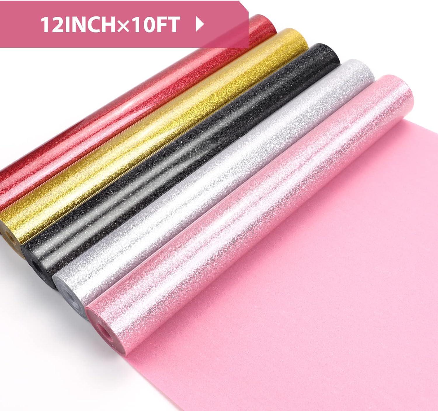 HTVRONT Heat Transfer Vinyl Black & White HTV Vinyl Rolls -12 x 20ft HTV Vinyl for Shirts, Black Iron on Vinyl for All Cutting Machines - Easy to Cut & Weed for Heat Transfer Design (Black&White)(Glitter-Pink)