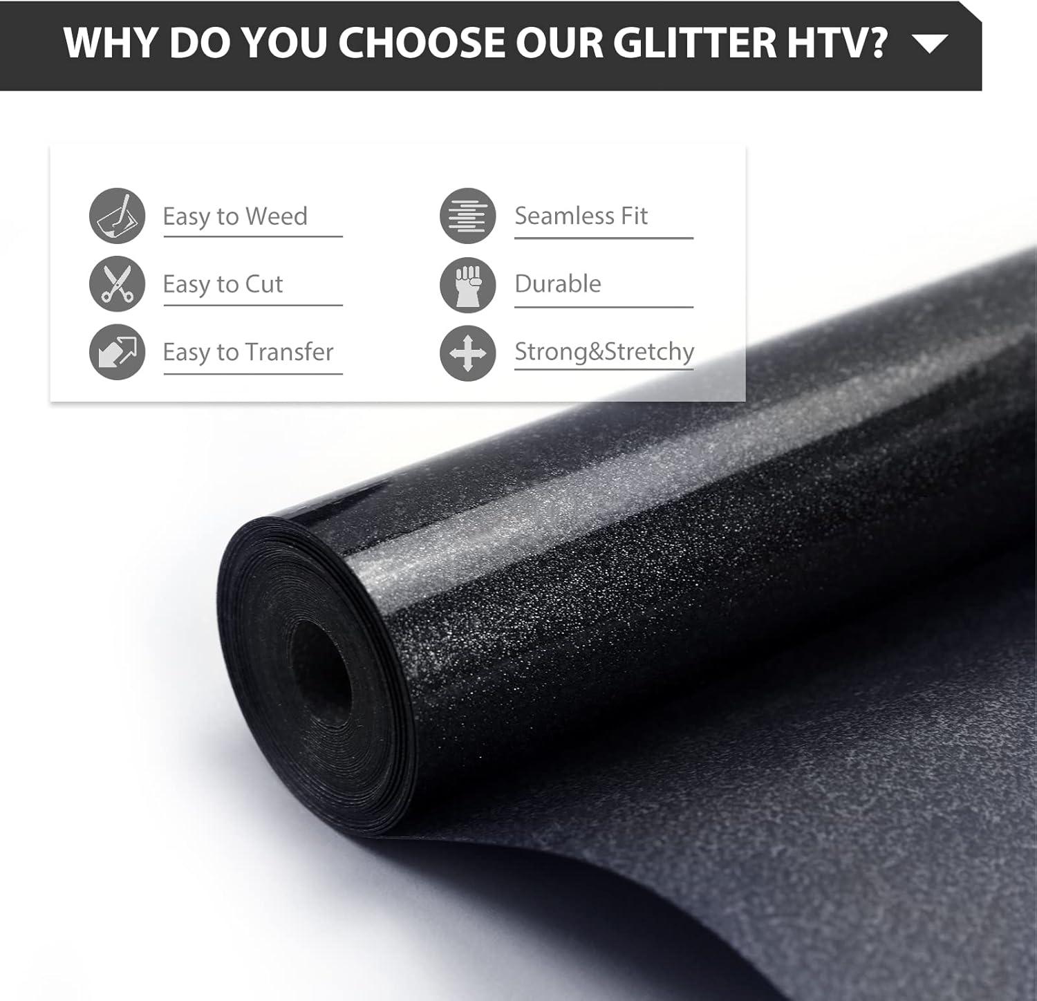 HTVRONT Heat Transfer Vinyl Black & White HTV Vinyl Rolls -12 x 20ft HTV Vinyl for Shirts, Black Iron on Vinyl for All Cutting Machines - Easy to Cut & Weed for Heat Transfer Design (Black&White)(Glitter-Black)