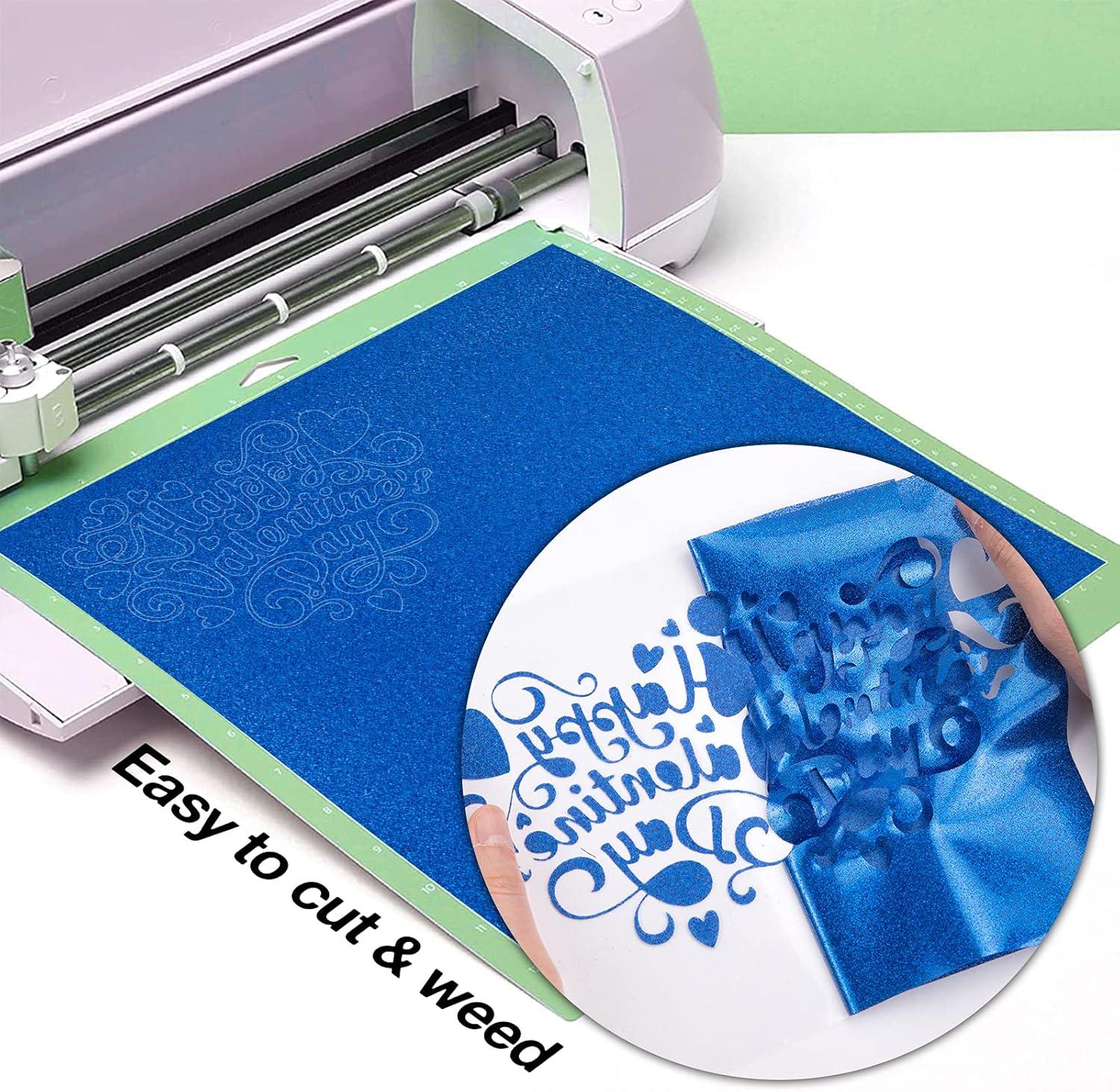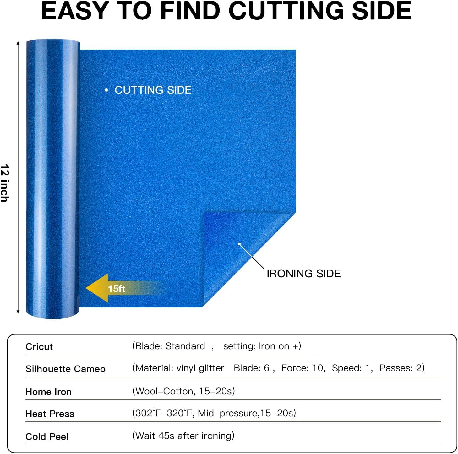 HTVRONT Heat Transfer Vinyl Champagne HTV Rolls – 12″ x 15ft Champagne Gold Iron on Vinyl for All Cutting Machines, White HTV Vinyl for Shirts – Easy to Cut & Weed for Heat Vinyl Design(Blue Glitter)