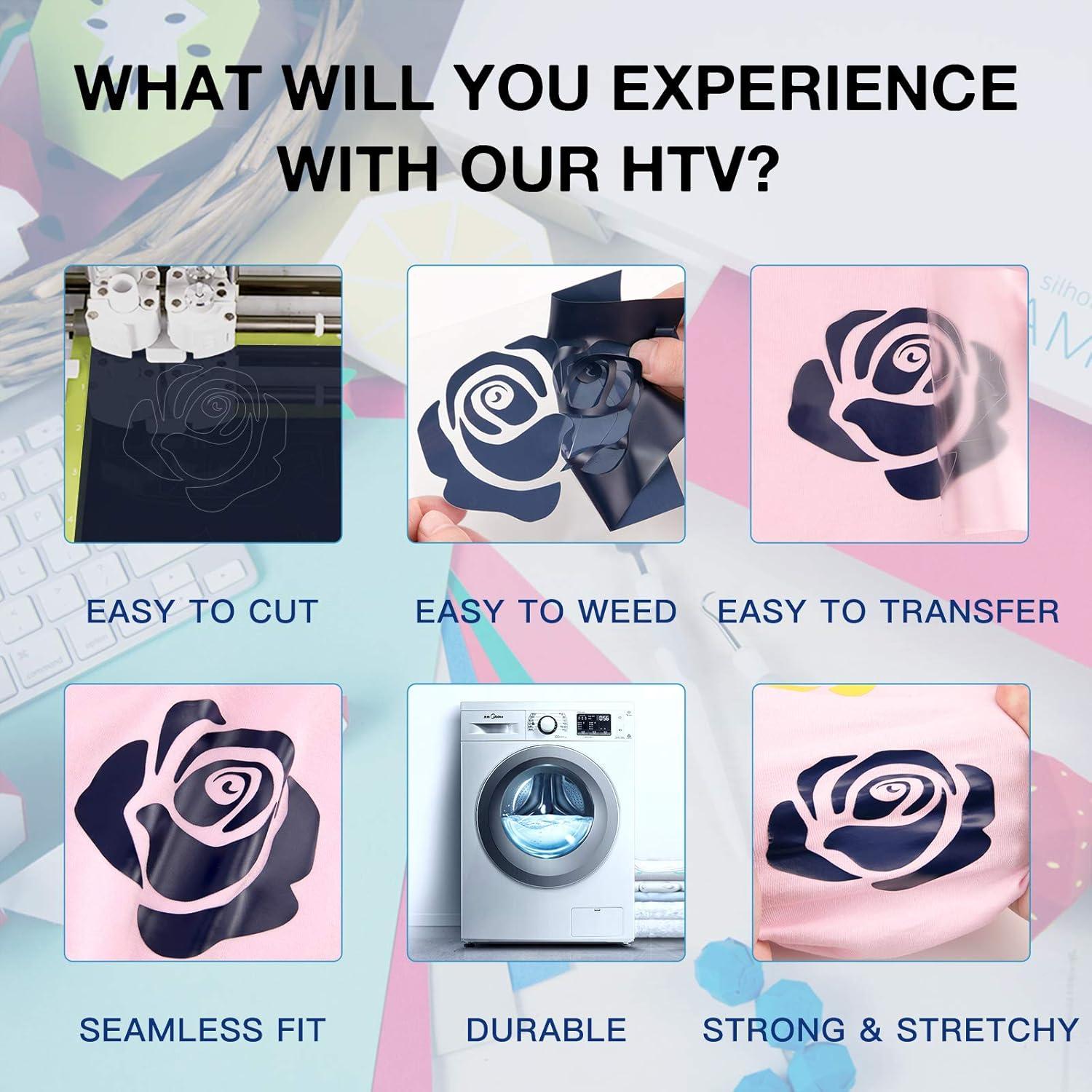【12 inches x 15 Feet Rolls】Our htv vinyl rolls measure 12″x 15ft are easy and convenient to cut into different size of art designs or logos or letters and perfect for 12×12″ and 12×24″ cutting mats. Our htv vinyl are compatible for all cutting machines