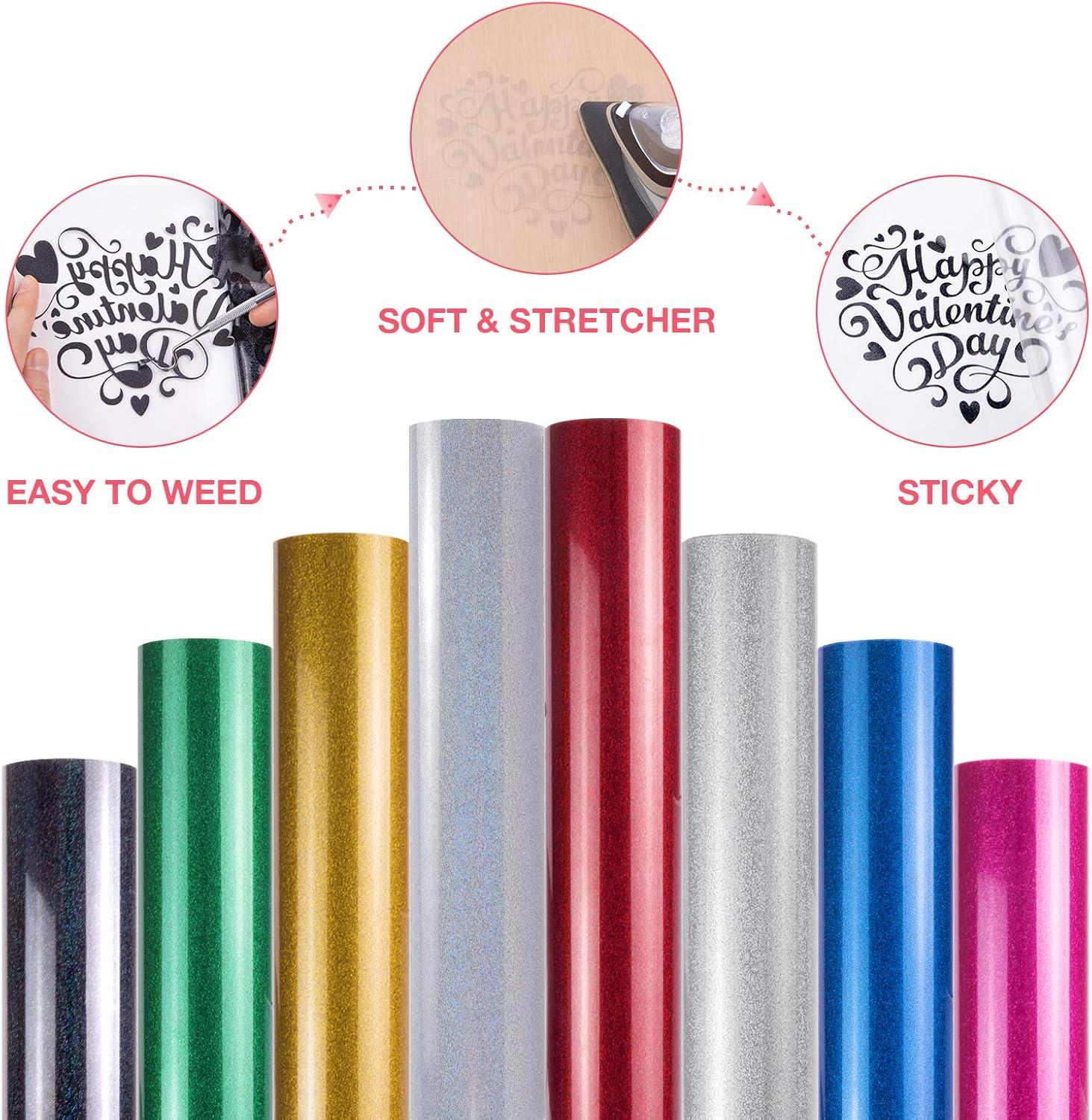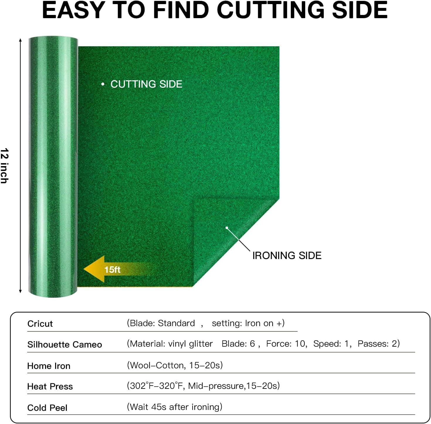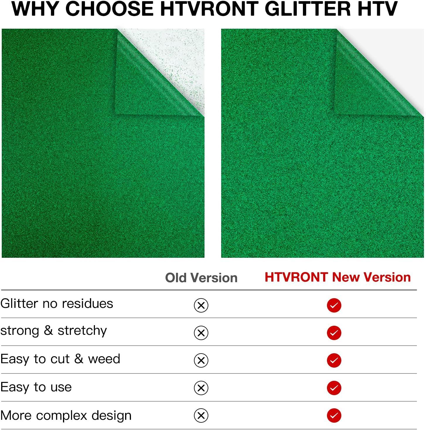 HTVRONT Heat Transfer Vinyl Champagne HTV Rolls – 12″ x 15ft Champagne Gold Iron on Vinyl for All Cutting Machines, White HTV Vinyl for Shirts – Easy to Cut & Weed for Heat Vinyl Design(Green Glitter)