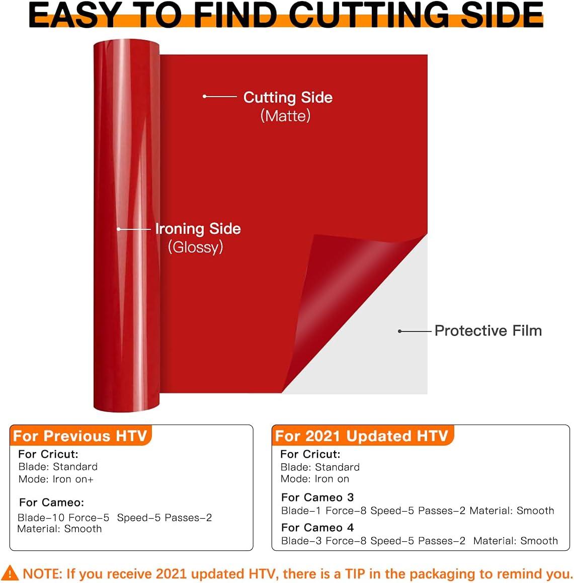 【12 inches x 15 Feet Rolls】Our htv vinyl rolls measure 12″x 15ft are easy and convenient to cut into different size of art designs or logos or letters and perfect for 12×12″ and 12×24″ cutting mats. Our htv vinyl are compatible for all cutting machines