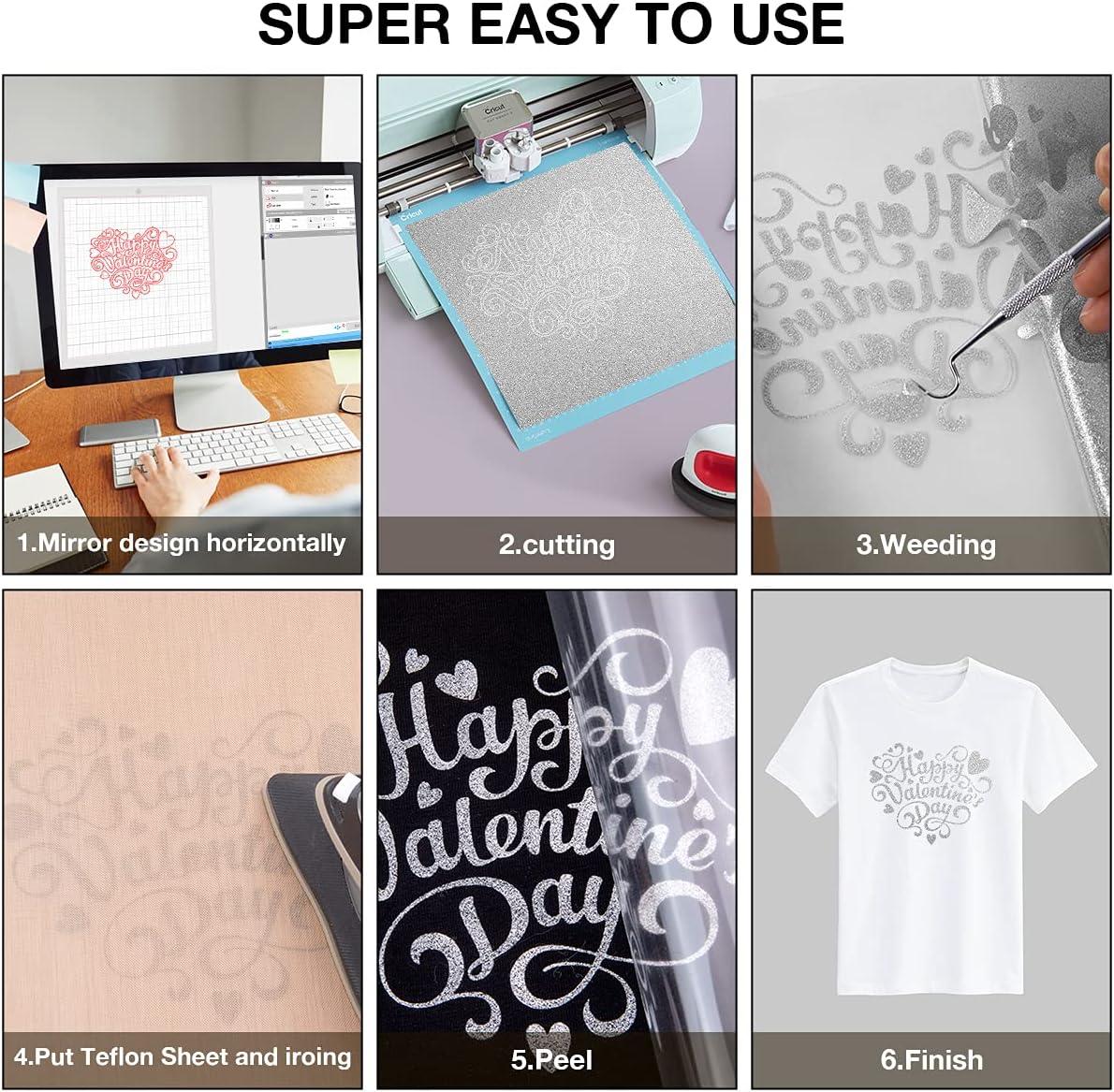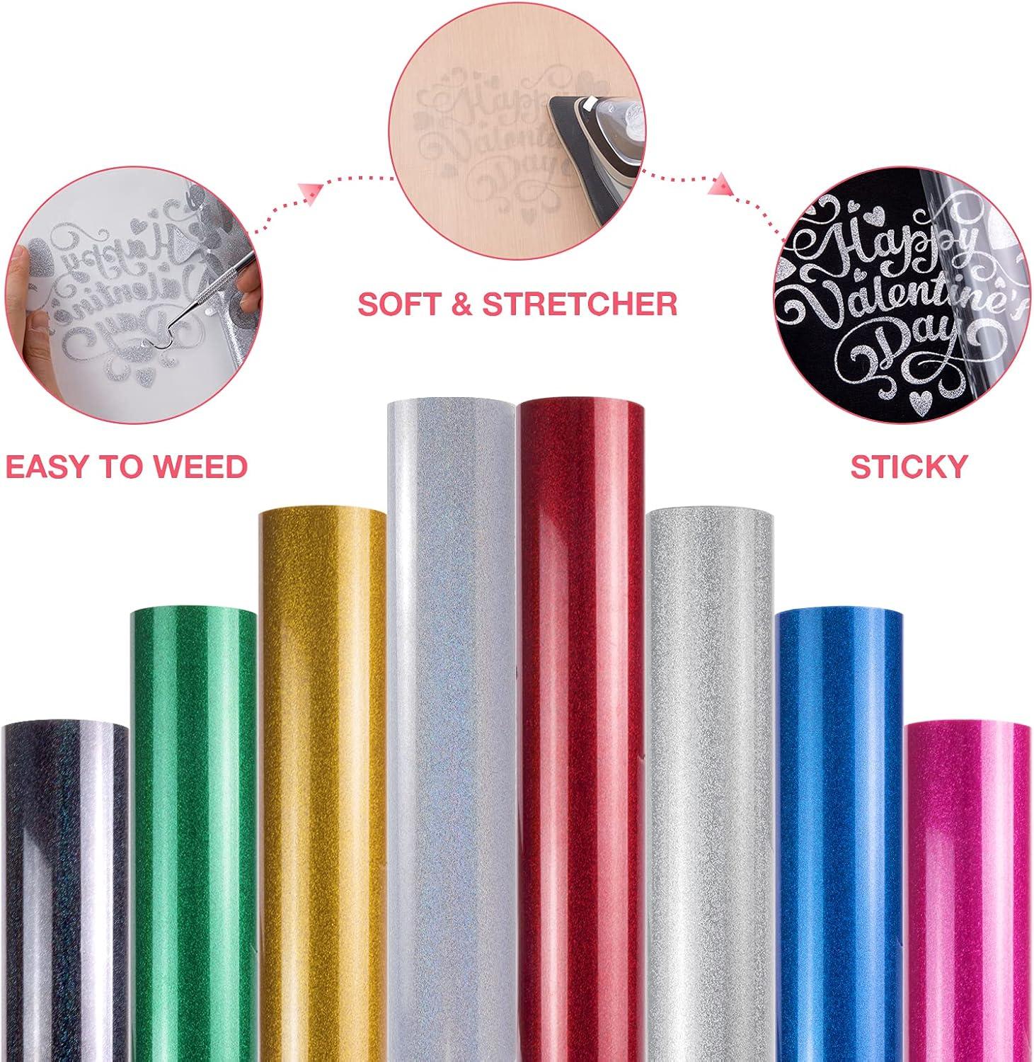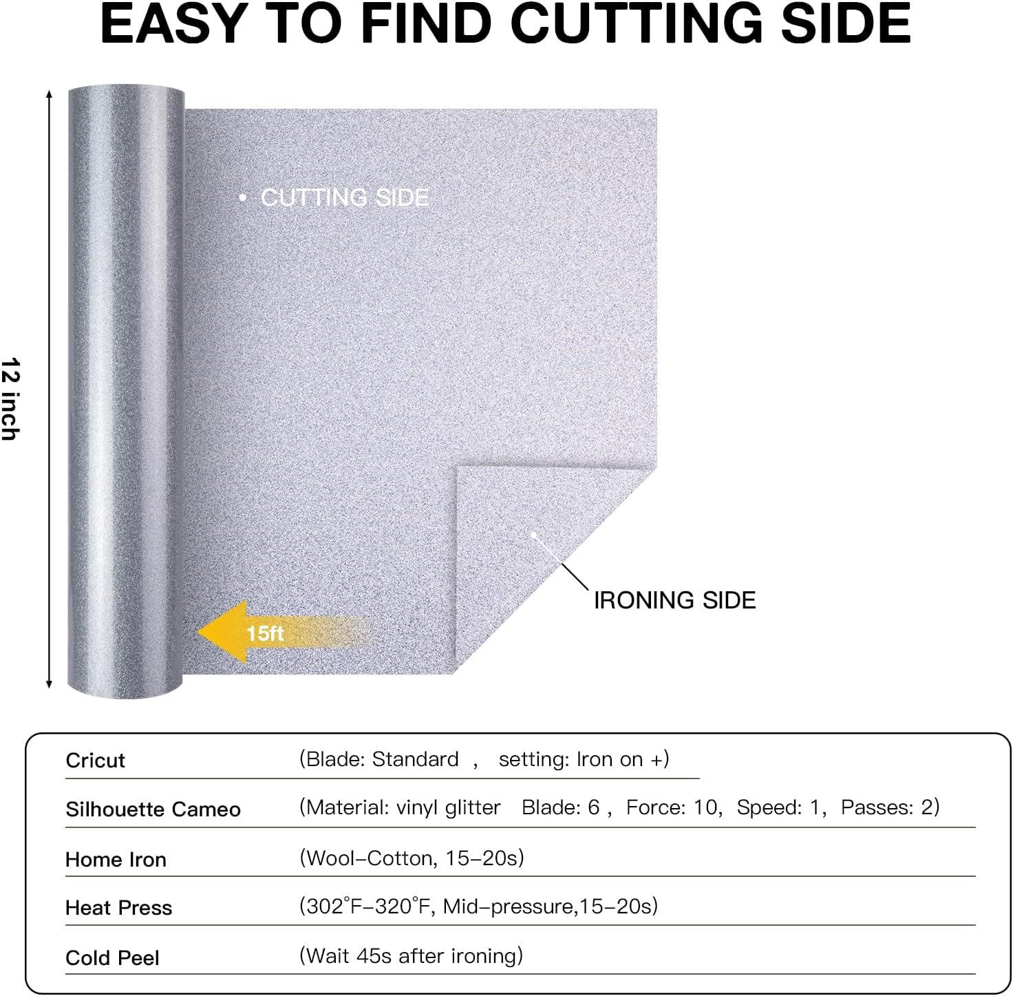 HTVRONT Heat Transfer Vinyl Champagne HTV Rolls – 12″ x 15ft Champagne Gold Iron on Vinyl for All Cutting Machines, White HTV Vinyl for Shirts – Easy to Cut & Weed for Heat Vinyl Design(Silver Glitter)
