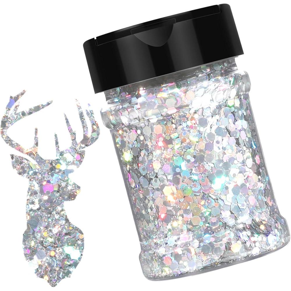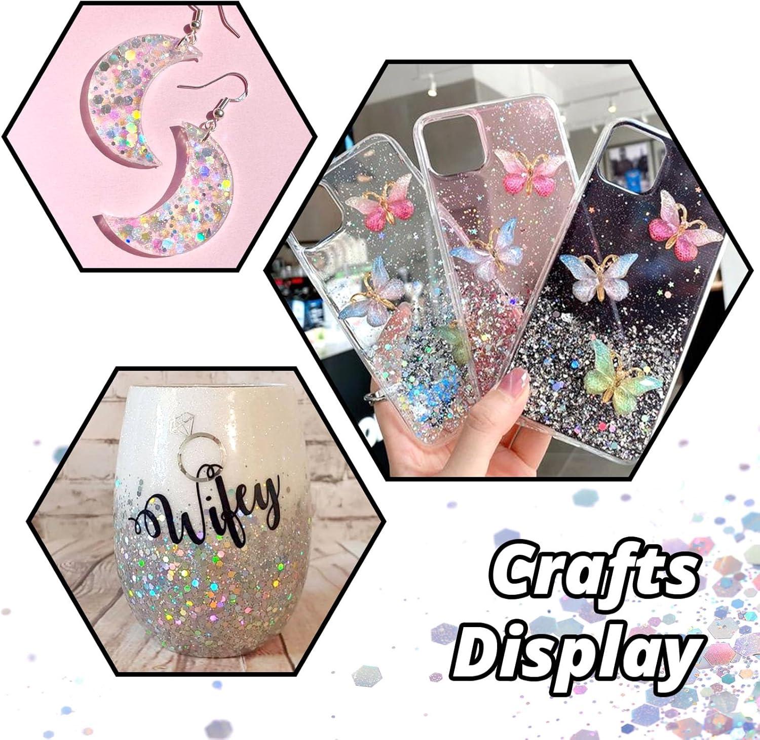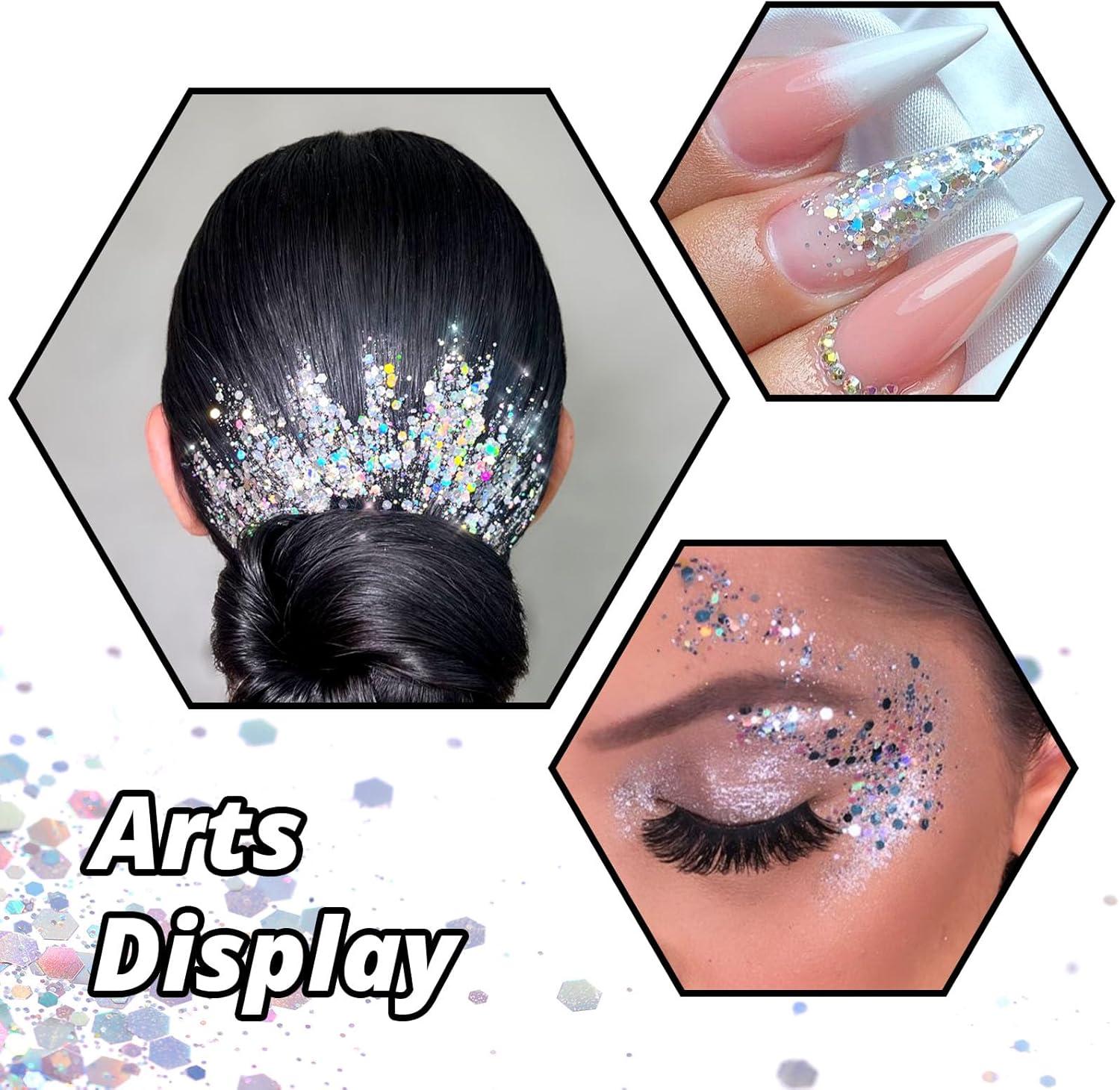 STUNNING HOLOGRAPHIC EFFECT. Mixed different size hexagonal sequins and fine glitter, our holographic glitter performs an extraordinary effect different from ordinary craft glitter. This chunky glitter for crafts offers a metallic finish while providing a secondary rainbow finish. It shines differently in dazzling colors in different light angles, taking on a sparkling holographic color. Add sparkle, shine, and texture effects to your projects