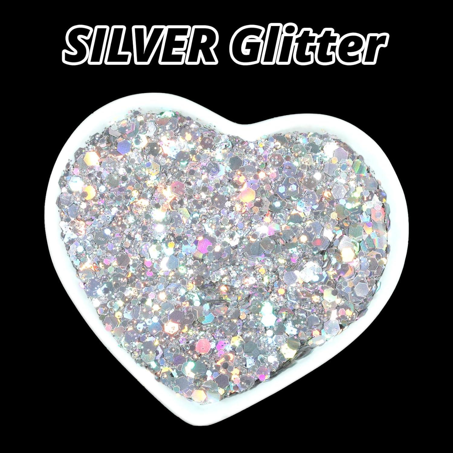 imageHTVRONT Holographic Orange Glitter  100g353oz Chunky Glitter for Resin Craft Tumbler Body Makeup Nail Glitter100g Silver