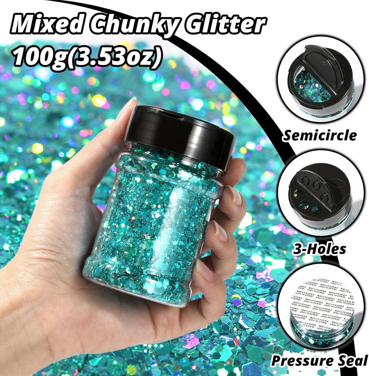LARGE BOTTLE FOR WIDE USAGE. 100g/jar(2.17*3.35inch), this chunky glitter for resin is suitable for long-time use. Meanwhile, our excellent chunky glitter displays high compatibility with resin, tumblers, nails, decor, painting, scrapbooking, jewelry, school projects, etc. This holographic glitter chunky works well with glue and epoxy to make sparkle crafts, which let your artworks stand out beautifully