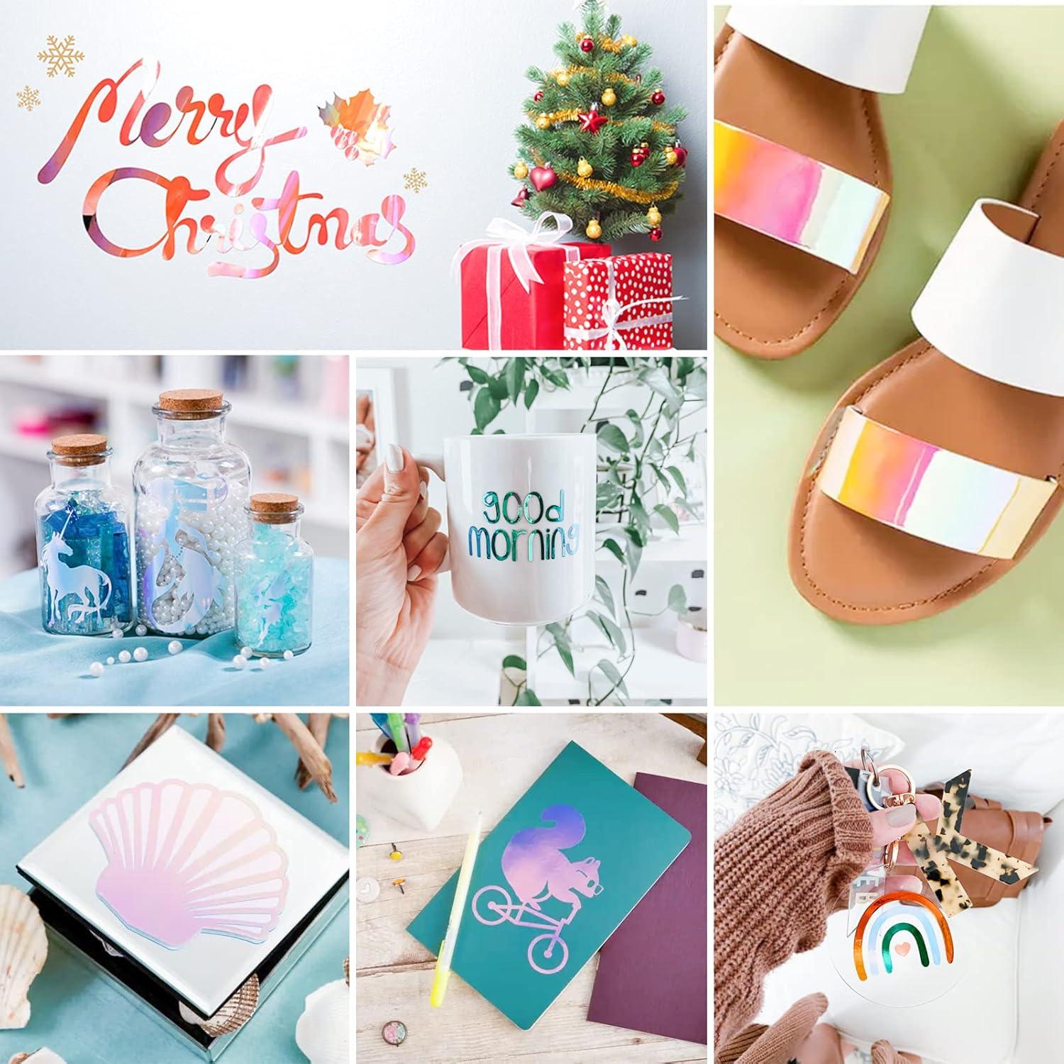 Wide Application: This holographic vinyl can be used indoors and outdoors, such as scrapbooking, notebook, laptop, phone case, tumbler, mirror, window, wood signs. Why not releasing your creativity and making some lovely and unique gifts for your friends and family by HTVRONT holographic vinyl permanent?