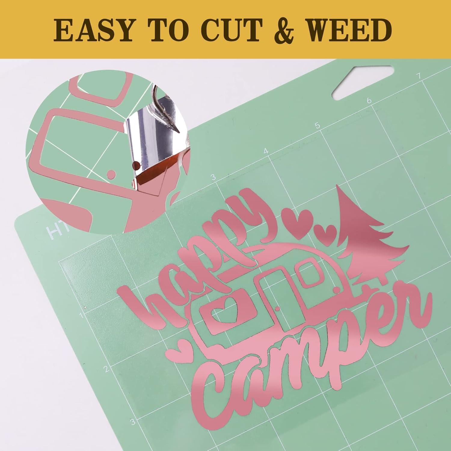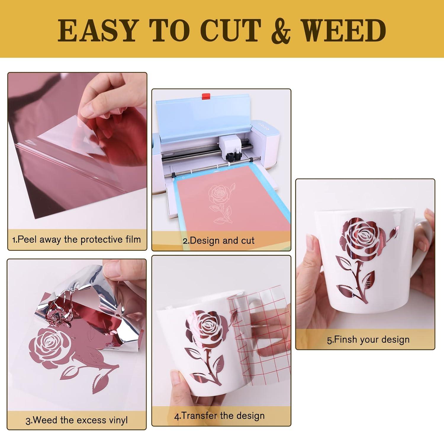 HTVRONT Holographic Vinyl – 12 Sheets 12 “x12 Holographic Permanent Vinyl for All Cutting Machine – Easy to Weed & Transfer Iridescent Craft Adhesive Vinyl Sheets(Rose Gold Metallic Vinyl)