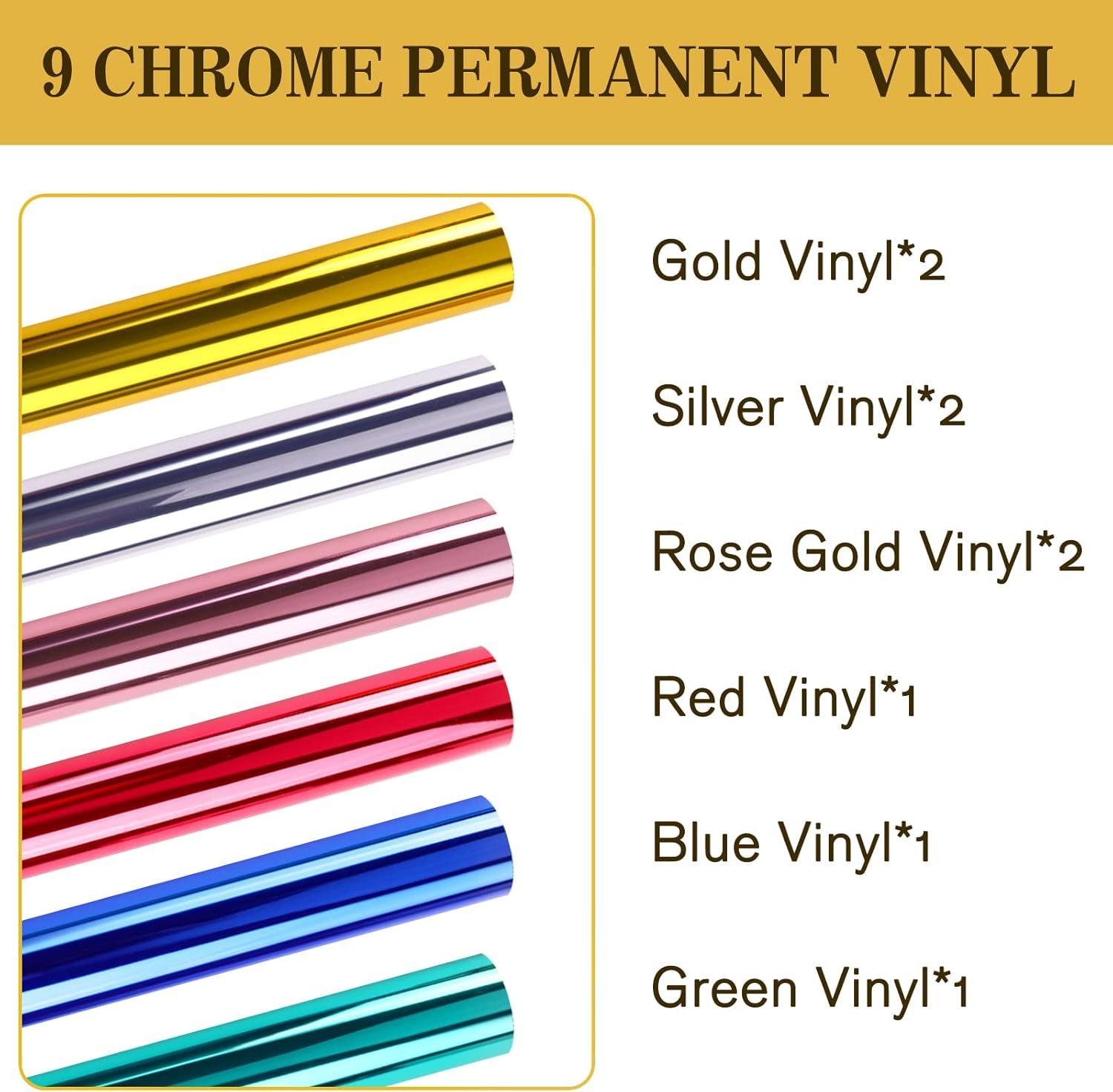 HTVRONT Holographic Vinyl - 12 Sheets 12 "x12 Holographic Permanent Vinyl for All Cutting Machine - Easy to Weed & Transfer Iridescent Craft Adhesive Vinyl Sheets(Mirror Metallic Vinyl)