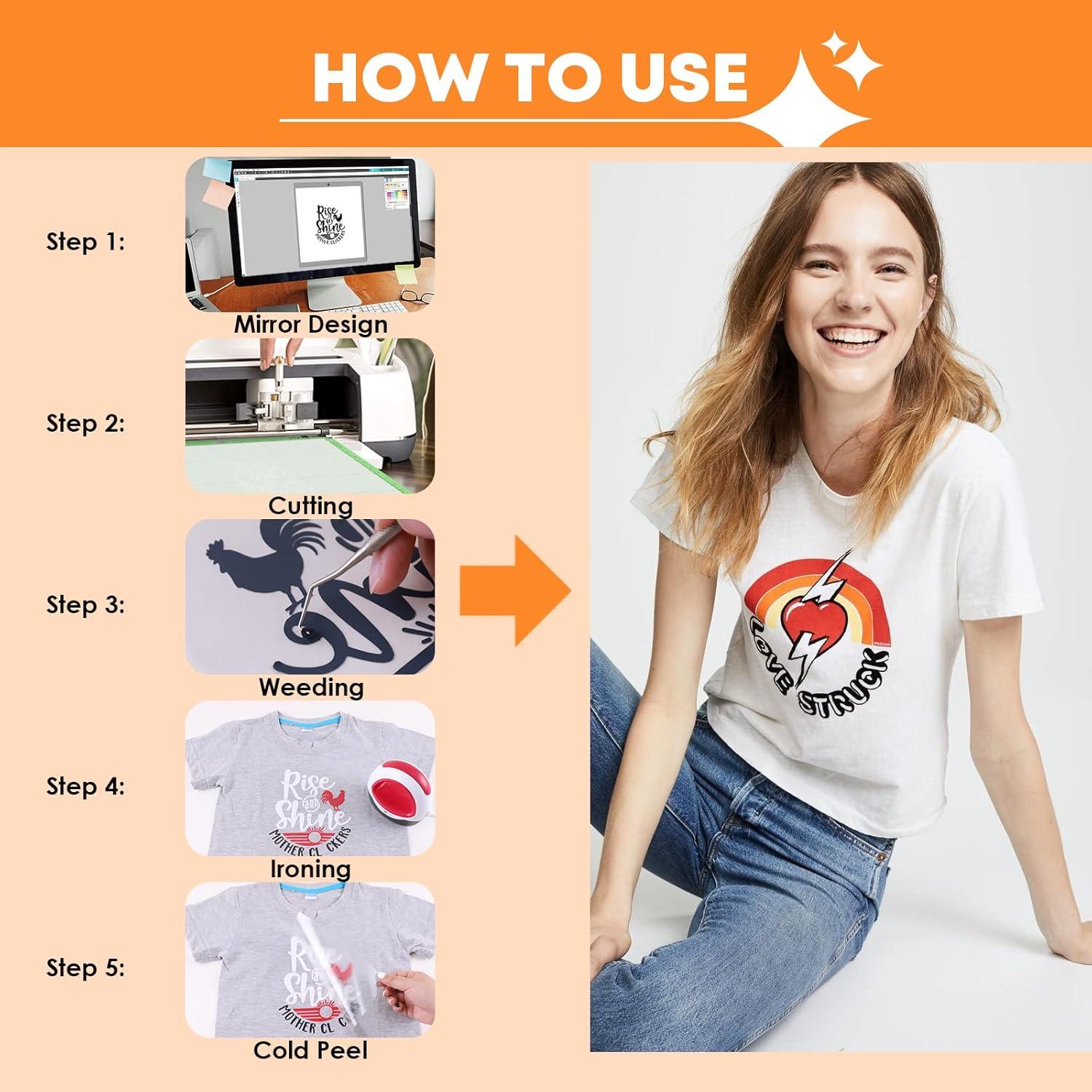 【EASY TO WEED & CUT】:Our high-quality turquoise htv is easy to cut, weed and transfer.The turquoise heat transfer vinyl will save your time on figuring out the cutting side and the image you cut,which is compatible with most cutting machines. You could follow the steps to set the parameters to achieve precise cutting and ironing. Our turquoise iron on vinyl is temperature, pressure sensitive and can be easily torn off once the design is transferred to the fabric