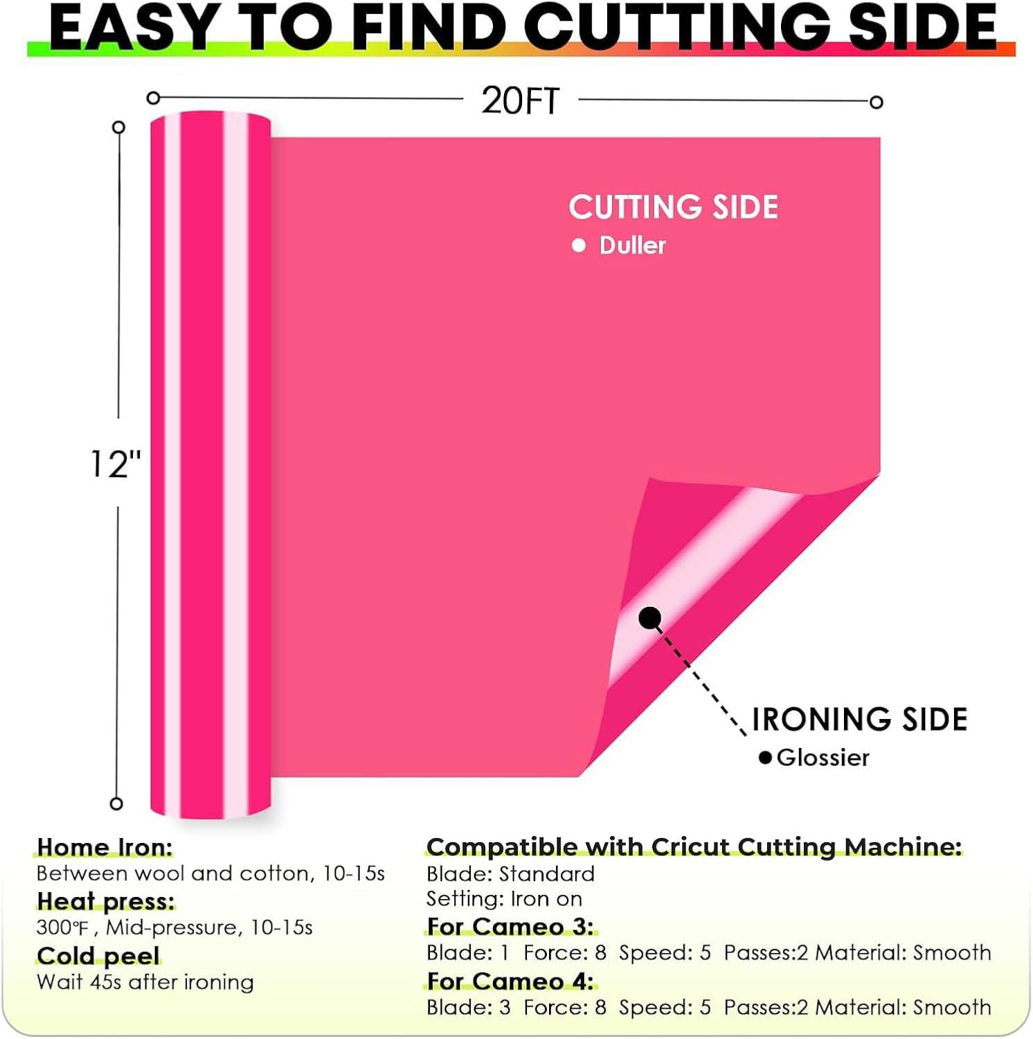 HTVRONT HTV Heat Transfer Vinyl-12 x 3FT Turquoise HTV Vinyl Roll for T-Shirts, Iron on Vinyl for All Cutting Machines & Heat Press Machine- Easy to Cut & Weed Vinyl Heat Transfer (Turquoise)(C-Neon Pink)