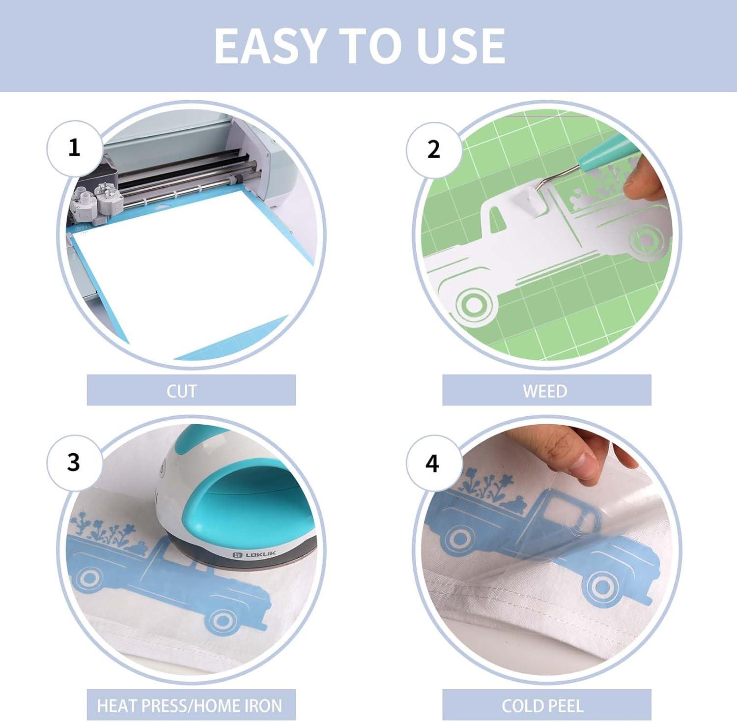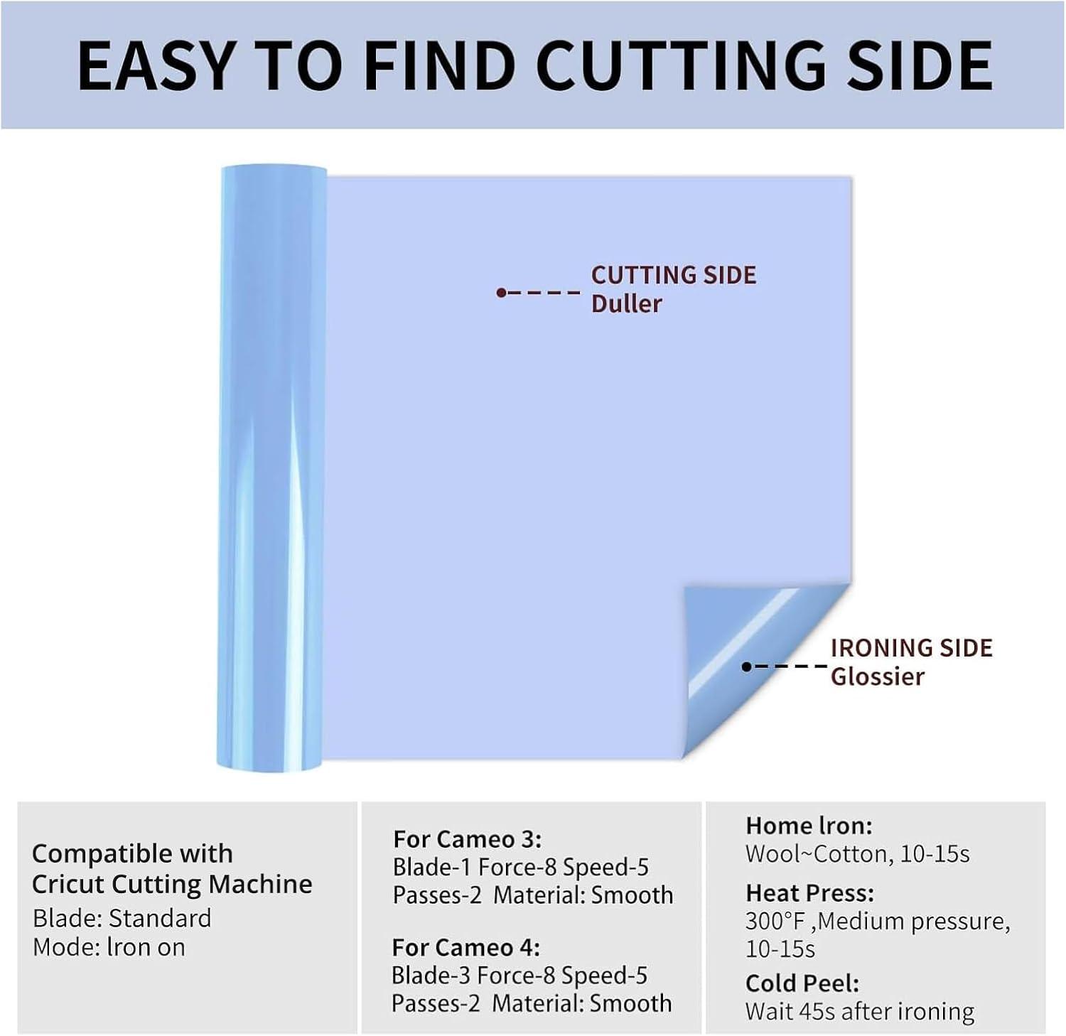 【EASY TO WEED & CUT】:Our high-quality turquoise htv is easy to cut, weed and transfer.The turquoise heat transfer vinyl will save your time on figuring out the cutting side and the image you cut,which is compatible with most cutting machines. You could follow the steps to set the parameters to achieve precise cutting and ironing. Our turquoise iron on vinyl is temperature, pressure sensitive and can be easily torn off once the design is transferred to the fabric