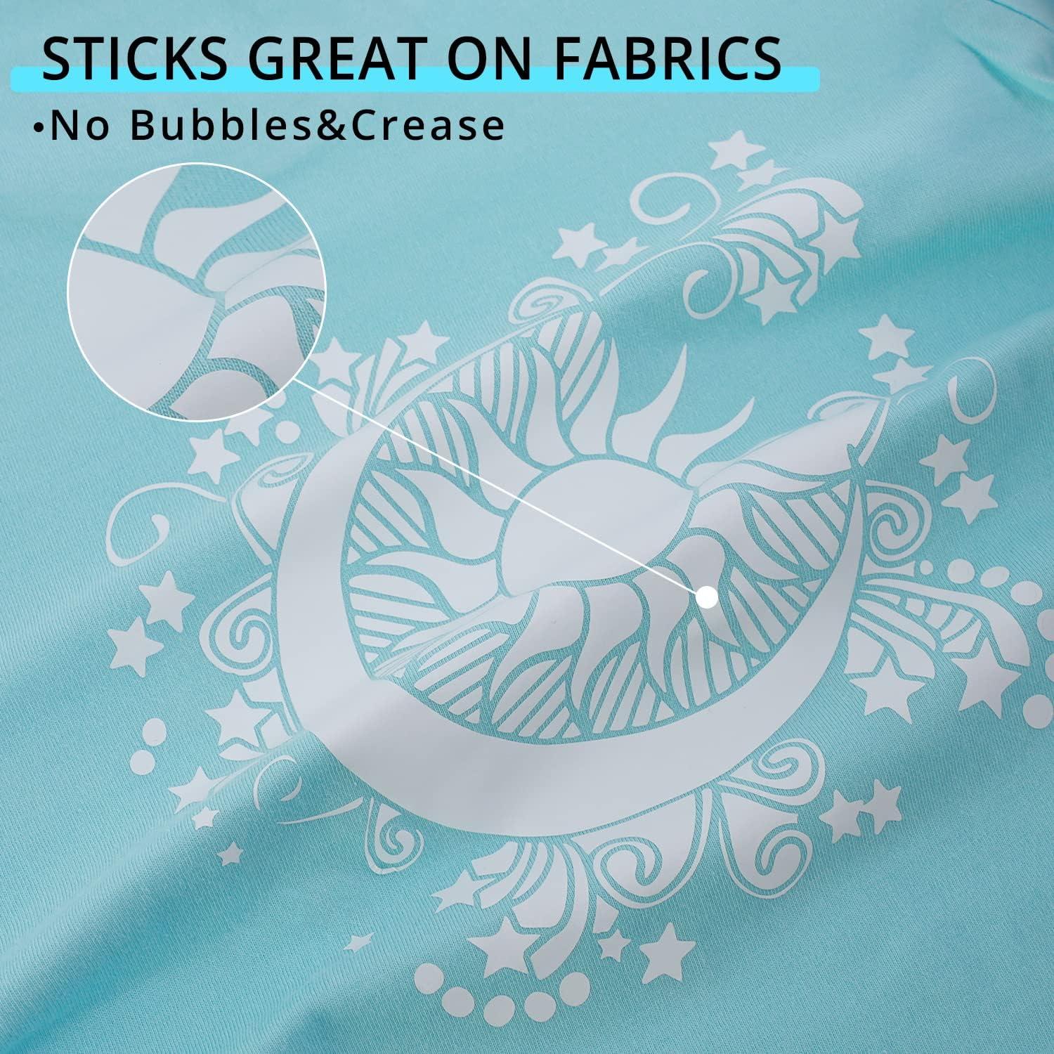 【EASY TO WEED & CUT】:Our high-quality turquoise htv is easy to cut, weed and transfer.The turquoise heat transfer vinyl will save your time on figuring out the cutting side and the image you cut,which is compatible with most cutting machines. You could follow the steps to set the parameters to achieve precise cutting and ironing. Our turquoise iron on vinyl is temperature, pressure sensitive and can be easily torn off once the design is transferred to the fabric