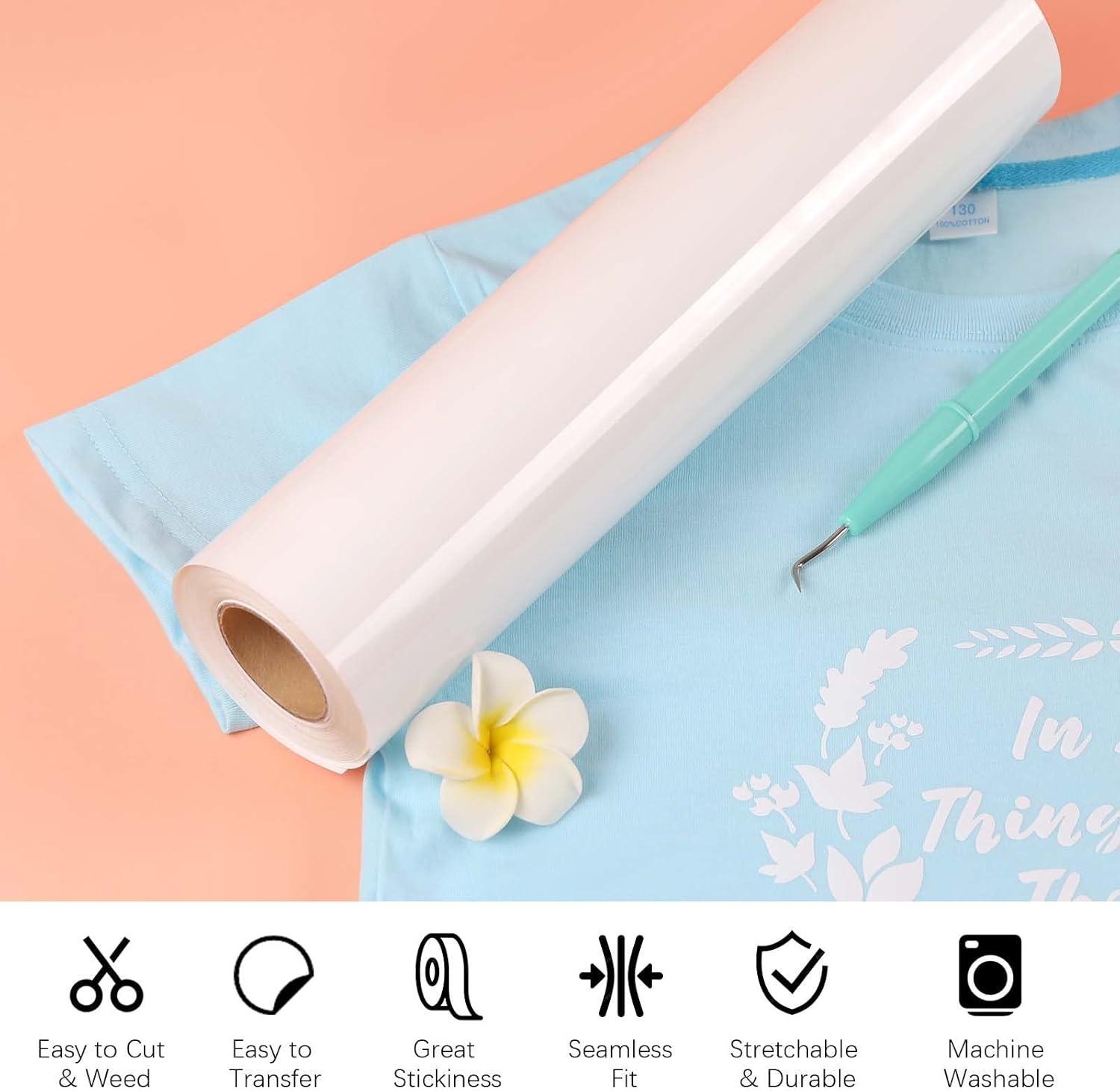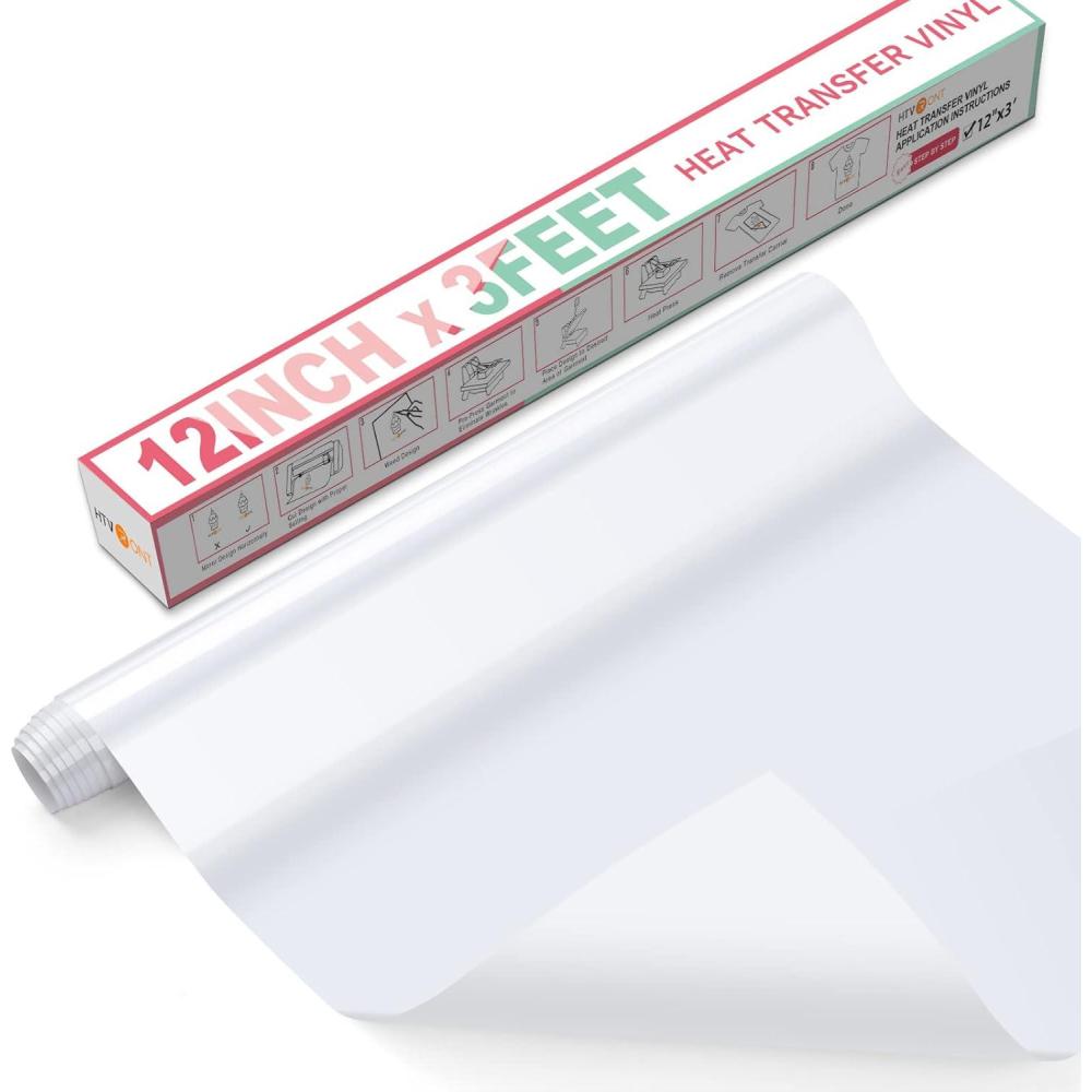 HTVRONT HTV Heat Transfer Vinyl-12 x 3FT Turquoise HTV Vinyl Roll for T-Shirts, Iron on Vinyl for All Cutting Machines & Heat Press Machine- Easy to Cut & Weed Vinyl Heat Transfer (Turquoise)(C-White & White)