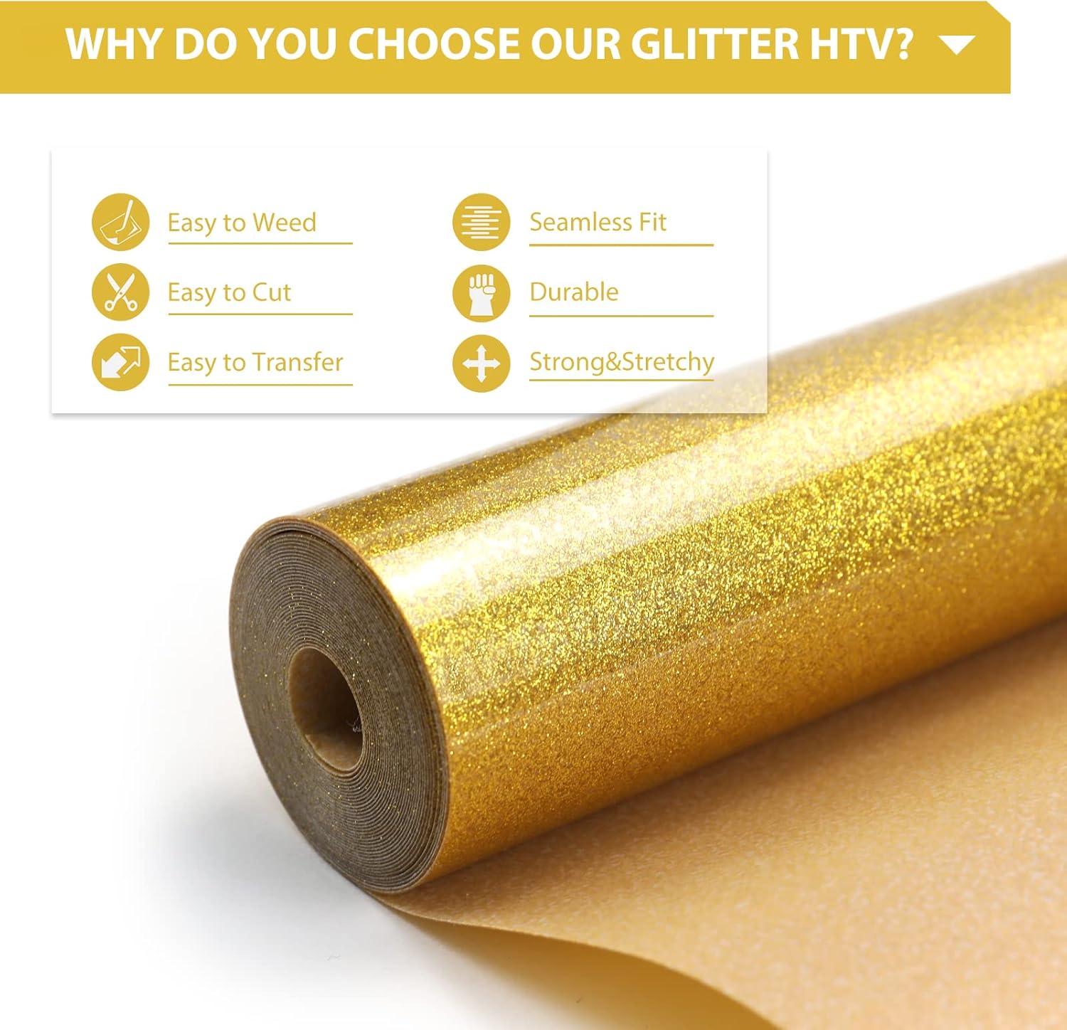 HTVRONT HTV Heat Transfer Vinyl-12 x 3FT Turquoise HTV Vinyl Roll for T-Shirts, Iron on Vinyl for All Cutting Machines & Heat Press Machine- Easy to Cut & Weed Vinyl Heat Transfer (Turquoise)(Glitter-Gold)