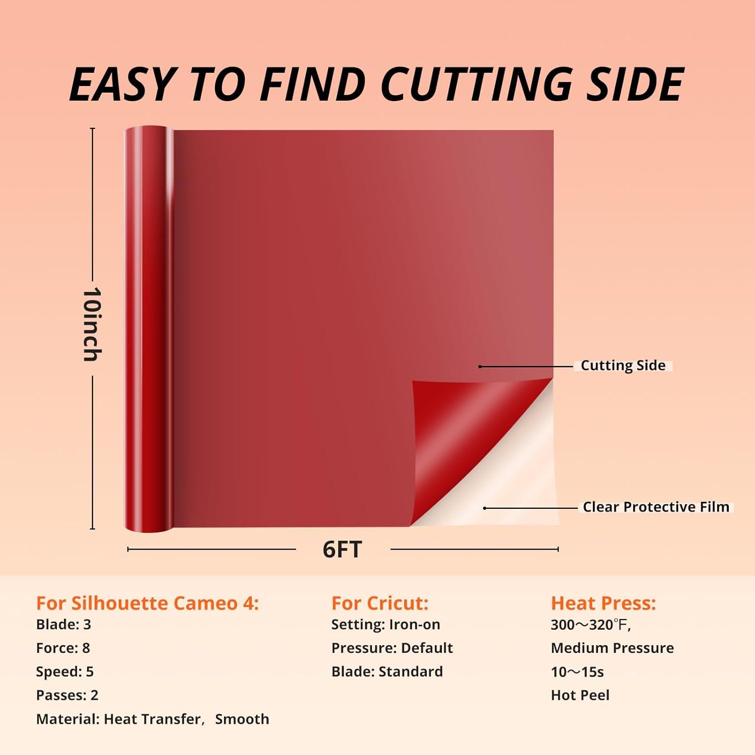 HTVRONT HTV Heat Transfer Vinyl-12 x 3FT Turquoise HTV Vinyl Roll for T-Shirts, Iron on Vinyl for All Cutting Machines & Heat Press Machine- Easy to Cut & Weed Vinyl Heat Transfer (Turquoise)(Puff-Red)