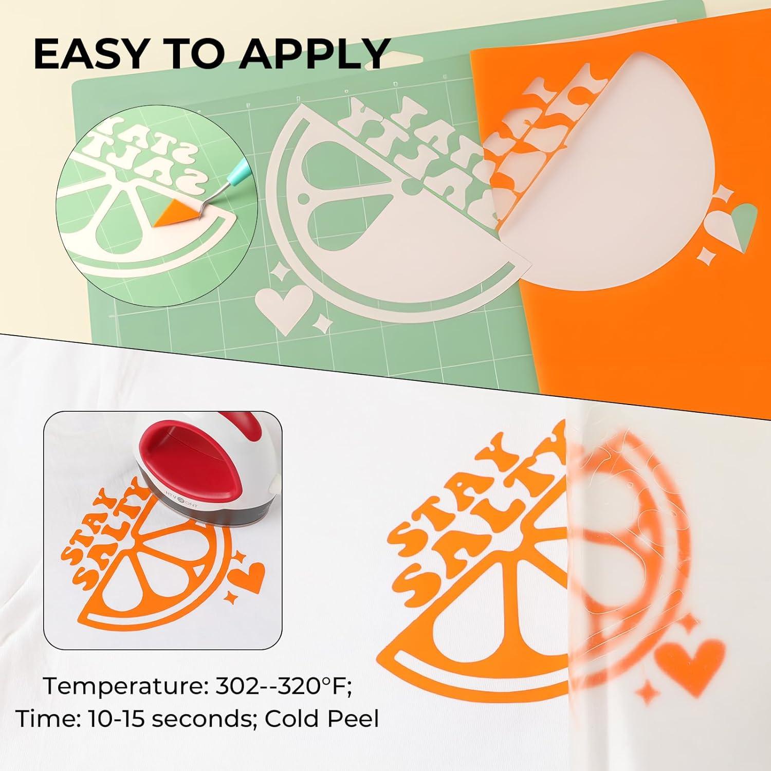 【Easy to Create with Professional Results】 Our heat transfer vinyl features a smooth, soft texture and excellent cutting precision, making it easy to craft intricate, detailed designs. Even the most complex patterns transfer cleanly and consistently. Responsive to both heat and pressure, our HTV adheres perfectly to fabrics for a seamless, durable finish. Whether you're a novice or a seasoned crafter, our htv vinyl allows you to create unique, handmade pieces.