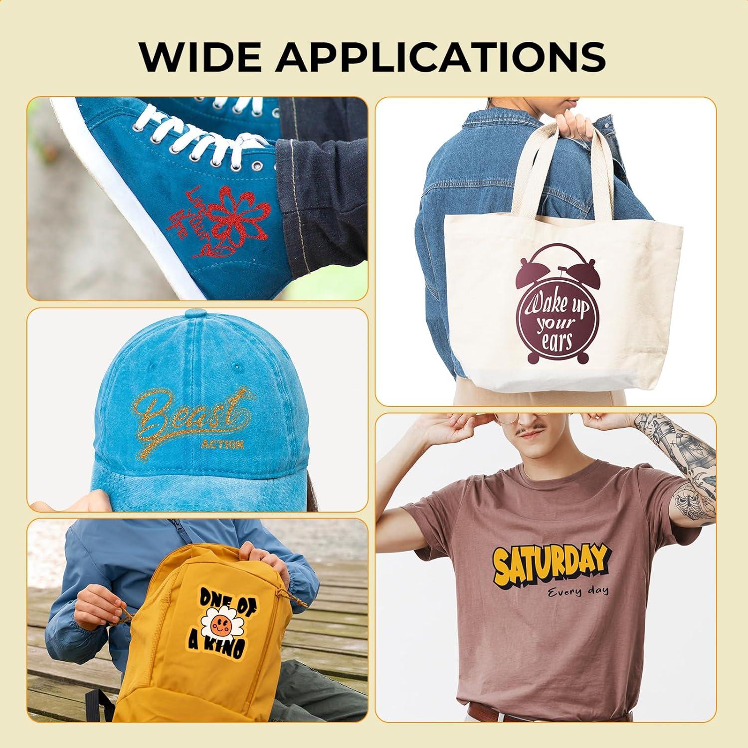【Effortless Application, Endless Creativity】Crafted with a flexible, user-friendly texture, our iron-on vinyl transfers seamlessly with either a household iron or heat press. Its versatile formula allows you to experiment with multi-layer designs and stunning effects—perfect for adding sparkle, color, and personality to T-shirts, totes, casual apparel, pillows, caps, shoes, and beyond.
