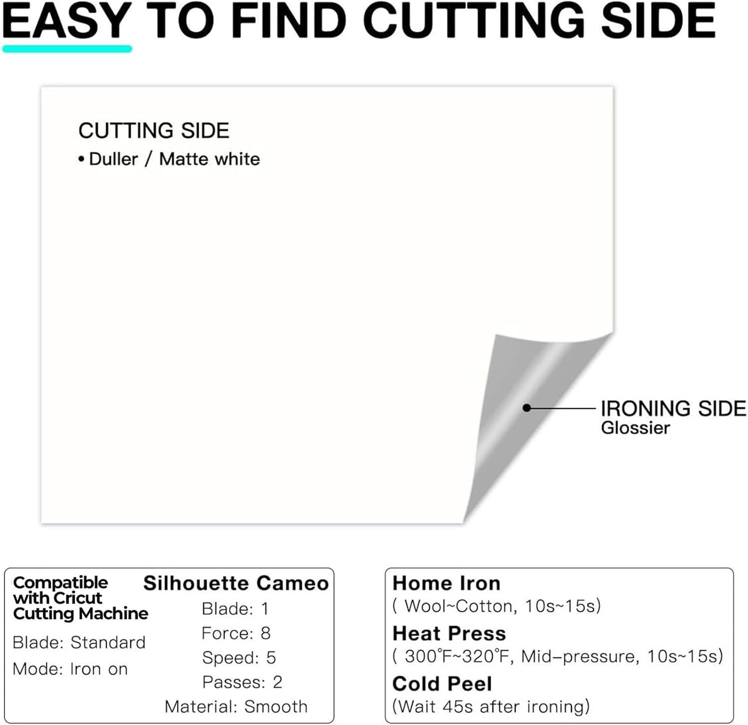 【Easy to Create with Professional Results】 Our heat transfer vinyl features a smooth, soft texture and excellent cutting precision, making it easy to craft intricate, detailed designs. Even the most complex patterns transfer cleanly and consistently. Responsive to both heat and pressure, our HTV adheres perfectly to fabrics for a seamless, durable finish. Whether you're a novice or a seasoned crafter, our htv vinyl allows you to create unique, handmade pieces.