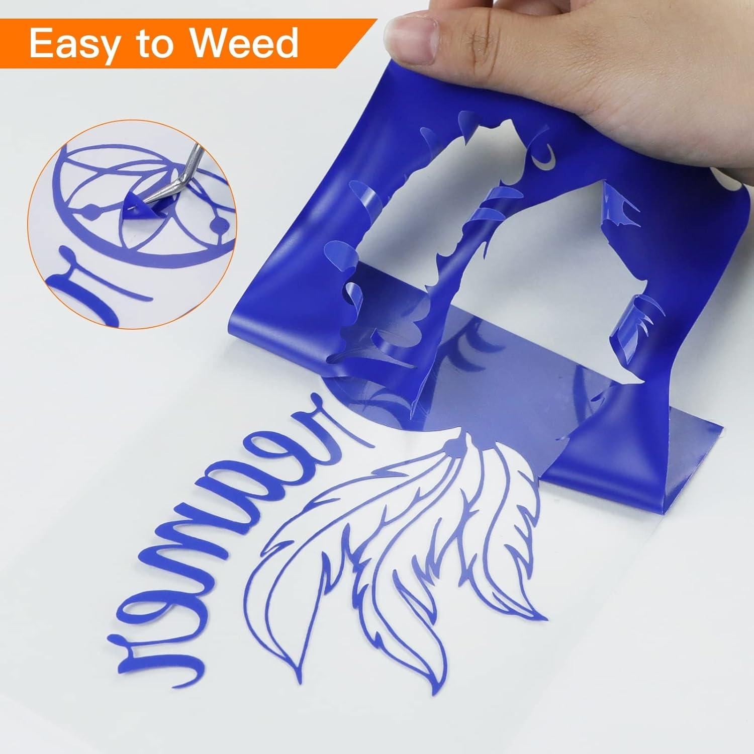 HTVRONT HTV Heat Transfer Vinyl Bundle (12 Pack) - 12" x 5FT HTV Vinyl Rolls, Easy to Cut Iron on Vinyl for All Cutting Machines, Easy to Weed Heat Transfer Vinyl(Blue)