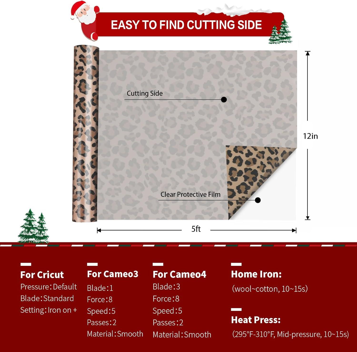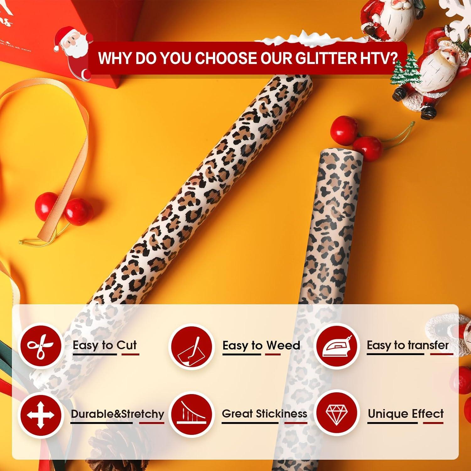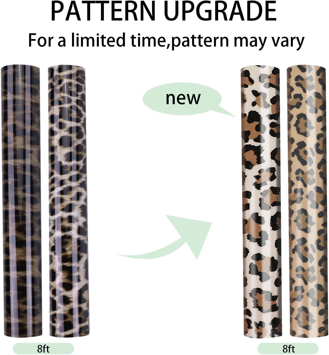 HTVRONT HTV Heat Transfer Vinyl Bundle (12 Pack) – 12″ x 5FT HTV Vinyl Rolls, Easy to Cut Iron on Vinyl for All Cutting Machines, Easy to Weed Heat Transfer Vinyl(Leopard)