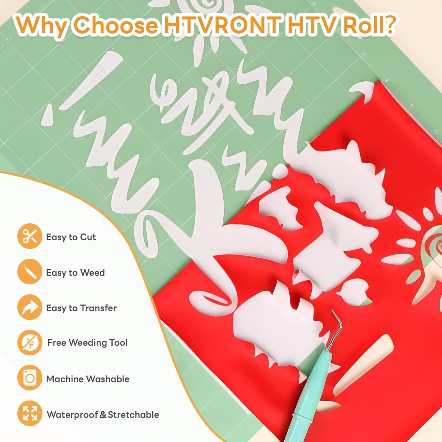 HTVRONT HTV Roll Heat Transfer Vinyl - 12" x 25ft Black Iron on Vinyl for T-Shirts, Easy to Weed & Transfer HTV Vinyl - Compatible with All Cutting Machine(Red)