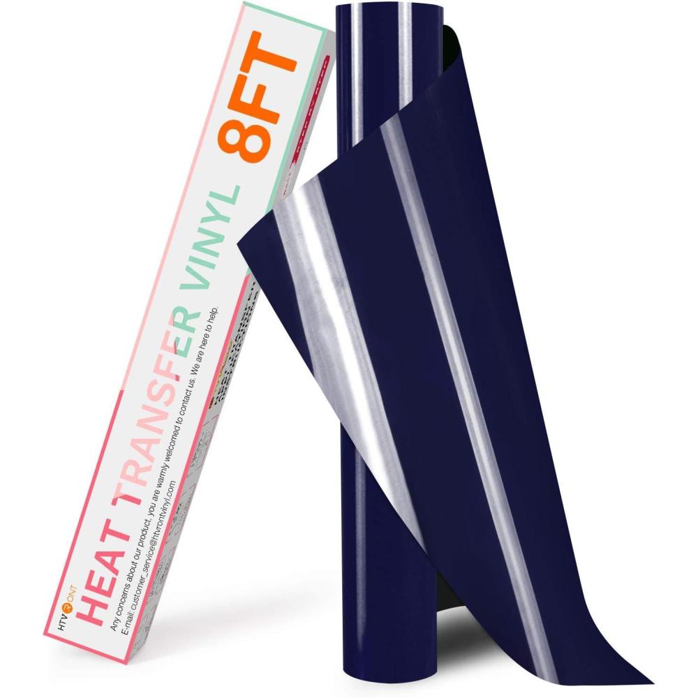 HTVRONT HTV Roll Heat Transfer Vinyl – 12″ x 8ft White HTV Vinyl for Shirts, Iron on Vinyl for All Cutting Machine – Easy to Cut & Weed for Heat Transfer Design (White)(A-Dark Blue)