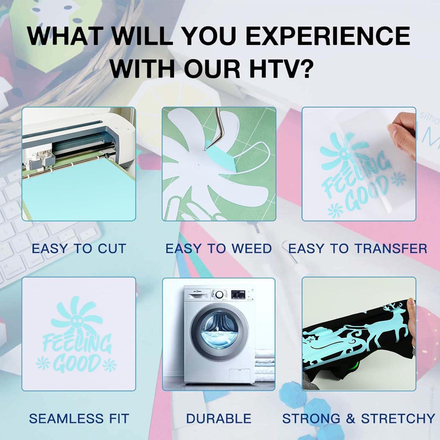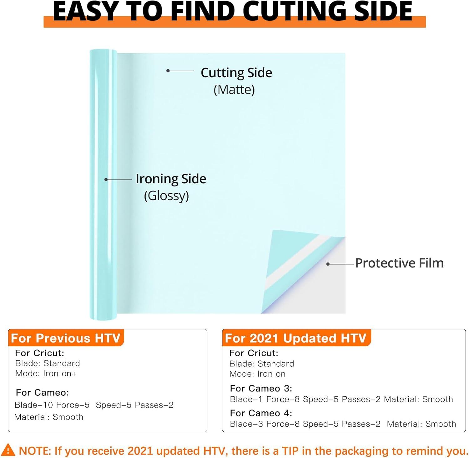 【12 INCH x 8 FEET】HTVRONT htv vinyl rolls are easy and convenient to cut into different sizes of art designs or logos or letters and perfect for 12''x12″ and 12''x24″ cutting mats. Our iron on vinyl are compatible for all cutter machines