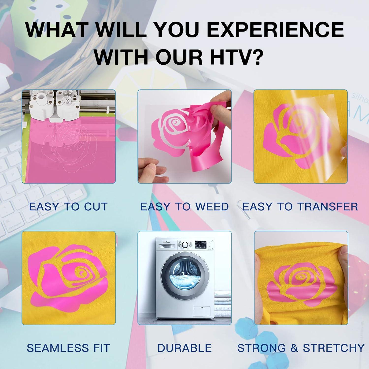 【12 INCH x 8 FEET】HTVRONT htv vinyl rolls are easy and convenient to cut into different sizes of art designs or logos or letters and perfect for 12''x12″ and 12''x24″ cutting mats. Our iron on vinyl are compatible for all cutter machines