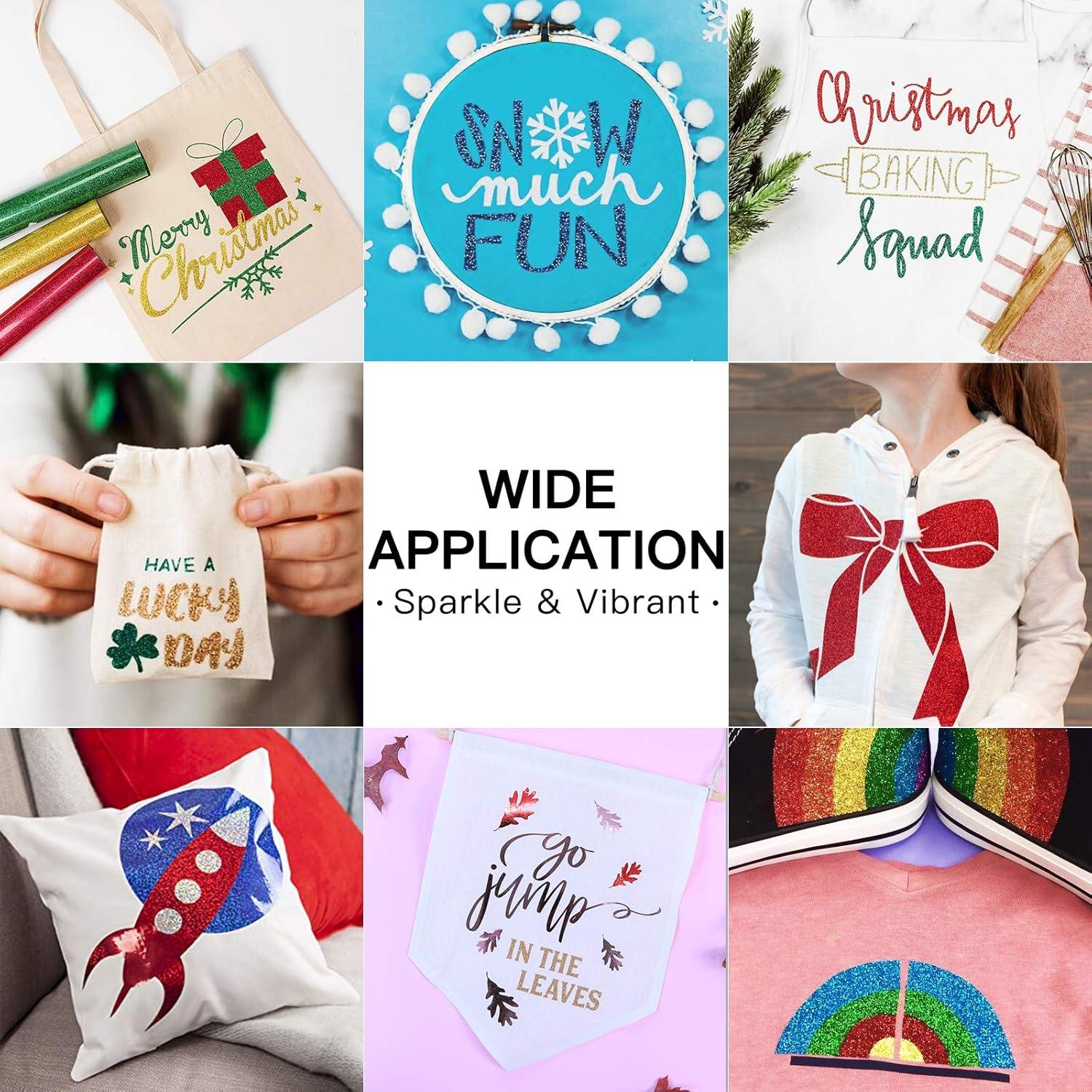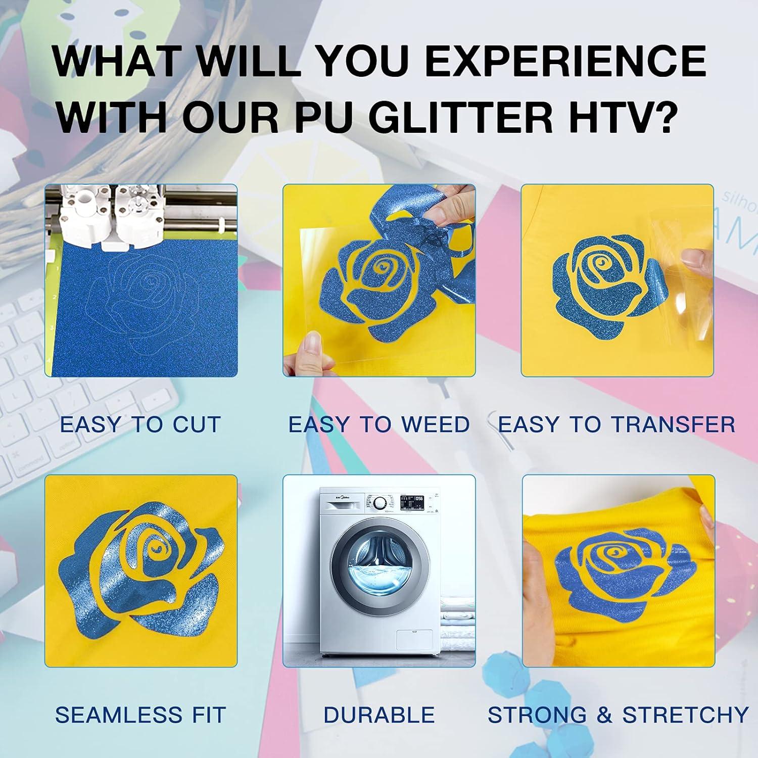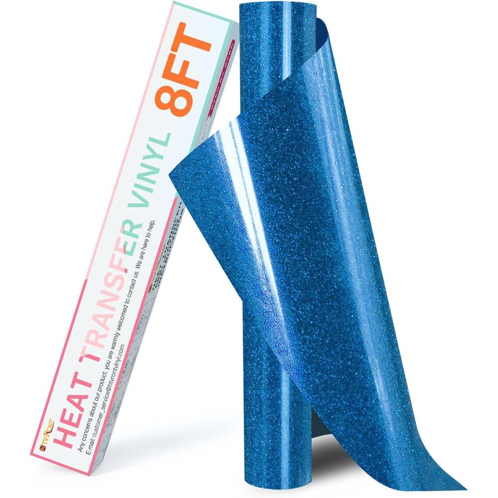 HTVRONT HTV Roll Heat Transfer Vinyl – 12″ x 8ft White HTV Vinyl for Shirts, Iron on Vinyl for All Cutting Machine – Easy to Cut & Weed for Heat Transfer Design (White)(B-Blue Glitter)
