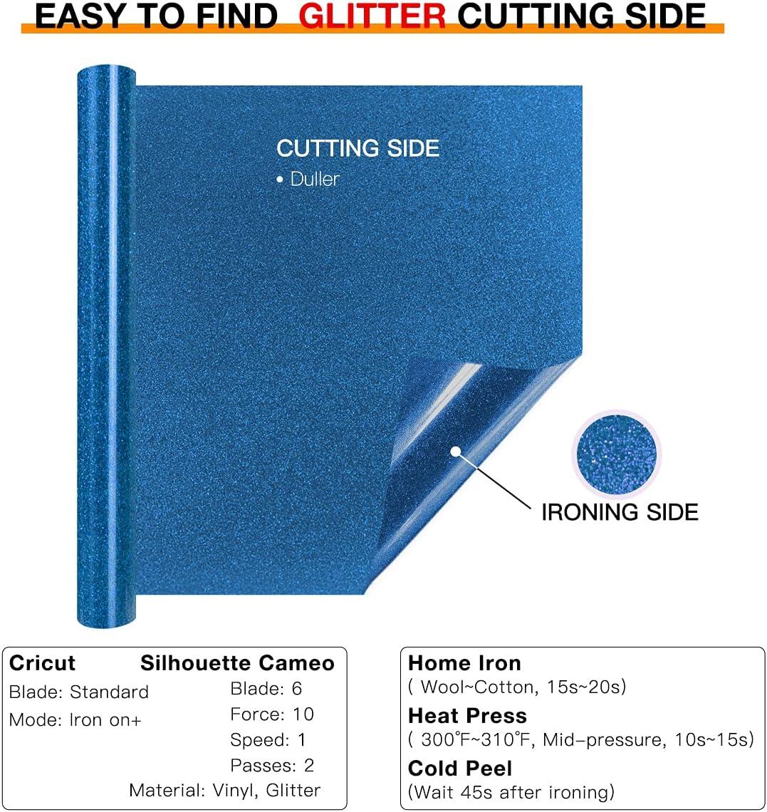 HTVRONT HTV Roll Heat Transfer Vinyl - 12" x 8ft White HTV Vinyl for Shirts, Iron on Vinyl for All Cutting Machine - Easy to Cut & Weed for Heat Transfer Design (White)(B-Blue Glitter)