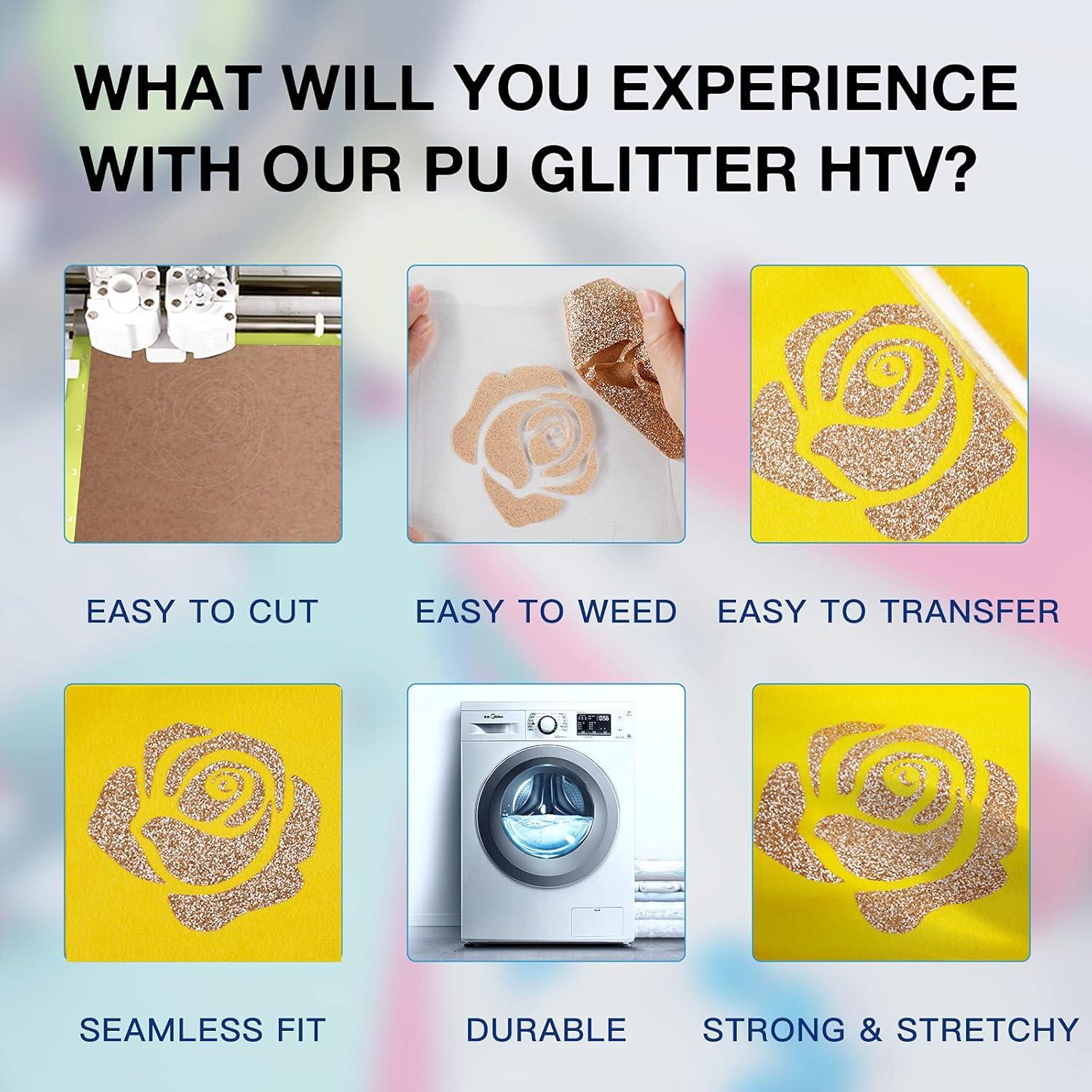 HTVRONT HTV Roll Heat Transfer Vinyl – 12″ x 8ft White HTV Vinyl for Shirts, Iron on Vinyl for All Cutting Machine – Easy to Cut & Weed for Heat Transfer Design (White)(B-Blue Glitter)
