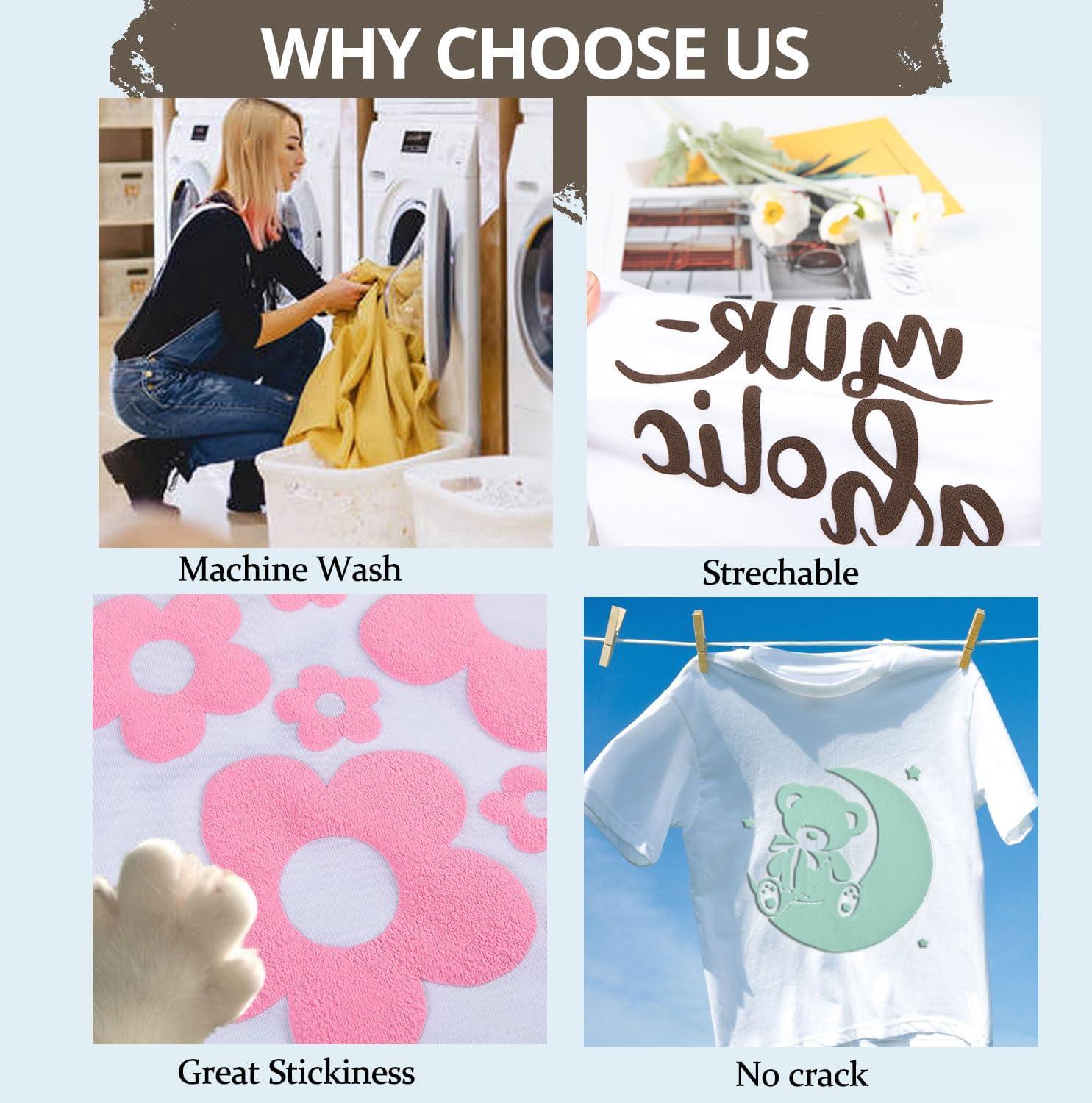 【USE WIDELY & SAFE TO WEAR】Your shirt, tote bags, sportswear, aprons, hat and pillow, which use our white htv, make you stand out from the crowd. Heat transfer vinyl is suitable for athletic mesh fabrics, Cotton, polyester and cotton blend, lycra/spandex, textiles etc. Our htv vinyl materials are SGS certified and are safe to wear