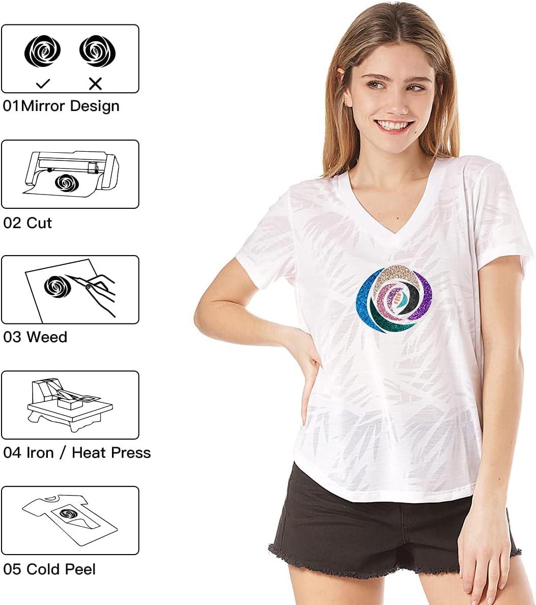 【EASY TO CUT WEED TRANSFER】Our premium quality heat transfer vinyl will save time which you may waste on each image or letter, because you can cut and weed easily through the designs just right. The iron on vinyl is sensitive to temperature and pressure, which can be heat transferred to any t-shirt easily. Before cutting, make sure the blade is clean and sharp, so that your design can be cut well and weeding can be done better