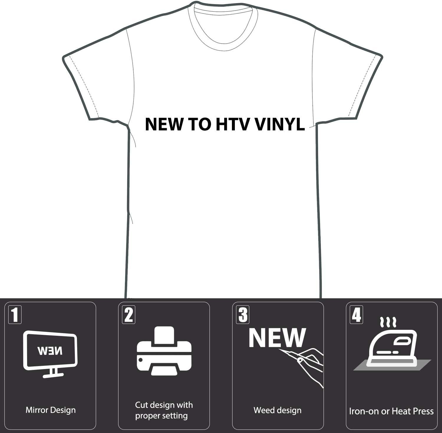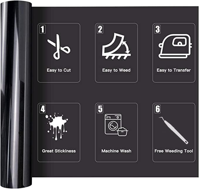 【EASY TO CUT & WEED & TRANSFER】Our white HTV black heat transfer vinyl will save your time which you may waste on each image or letter, because you can cut and weed easily through the designs just right.The white htv vinyl is sensitive to temperature and pressure, which can be heat transferred on any t-shirt easily