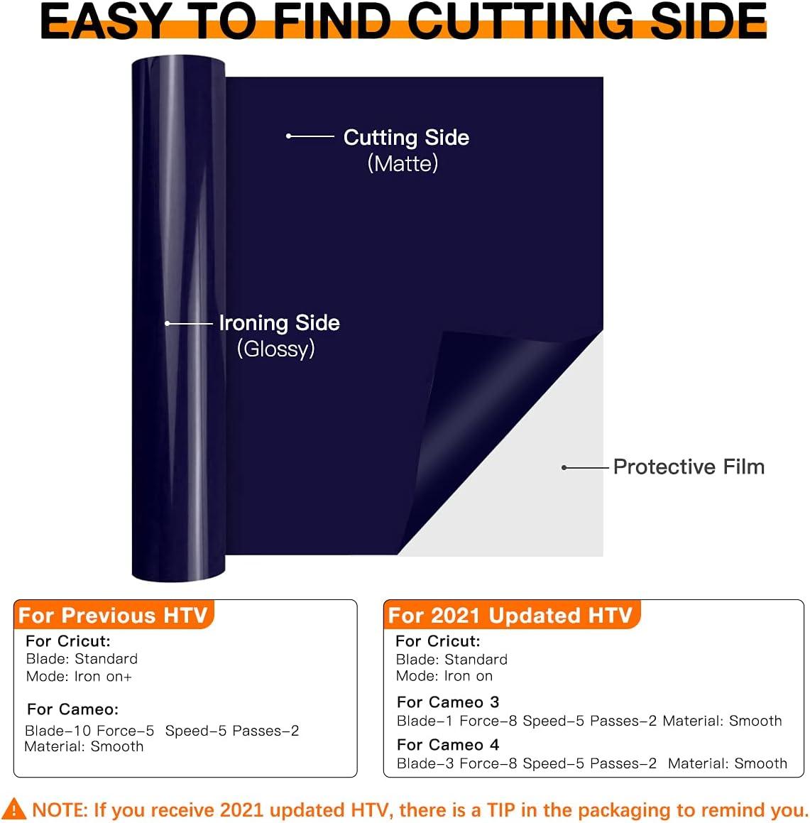 HTVRONT HTV Vinyl Rolls - 12" x 15ft Black & White Heat Transfer Vinyl for Shirts, Iron-On Vinyl for All Cutting Machines - Easy to Cut & Weed for Heat Design(Dark Blue)