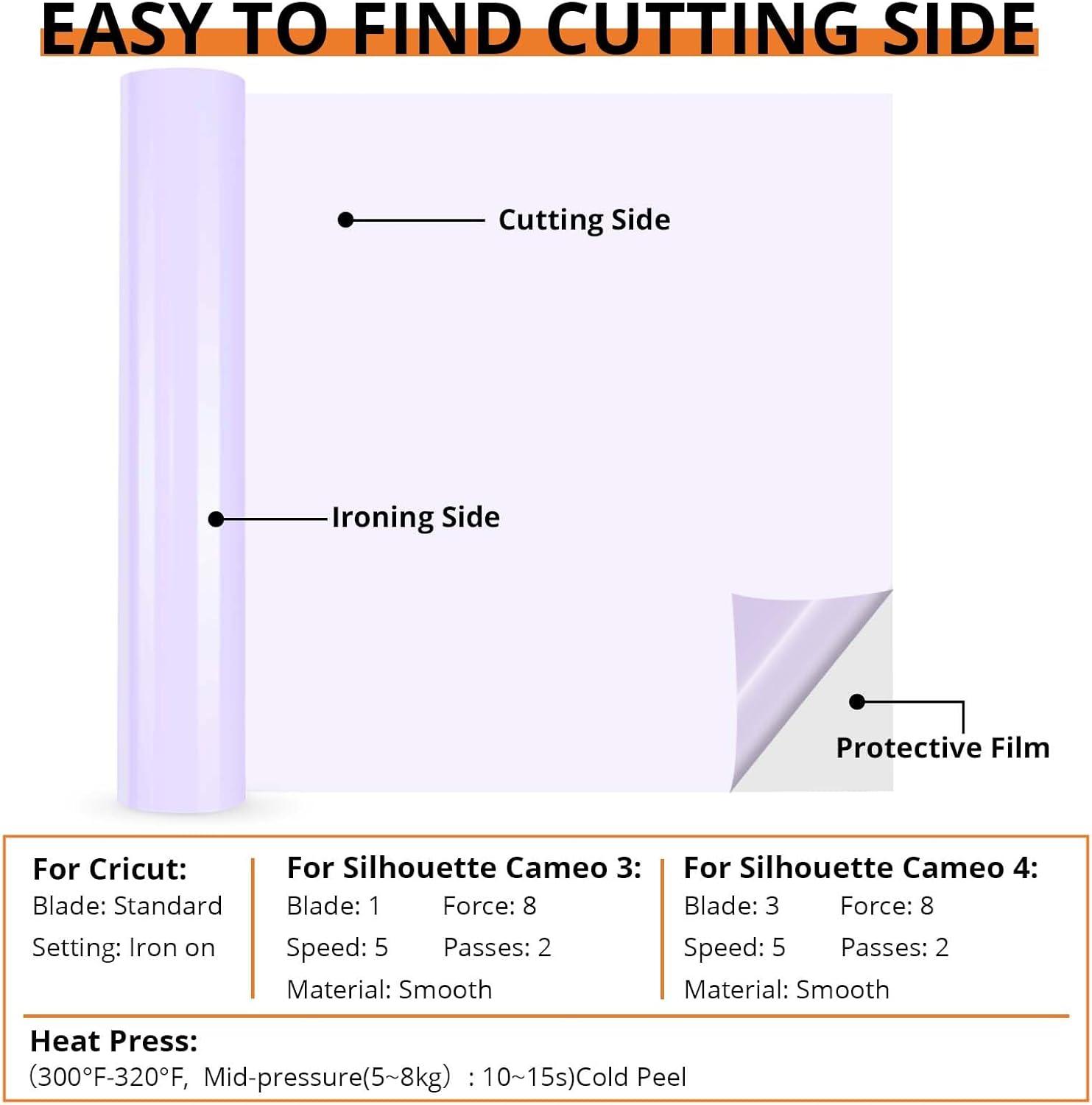 HTVRONT HTV Vinyl Rolls – 12″ x 15ft Black & White Heat Transfer Vinyl for Shirts, Iron-On Vinyl for All Cutting Machines – Easy to Cut & Weed for Heat Design(Light Purple)