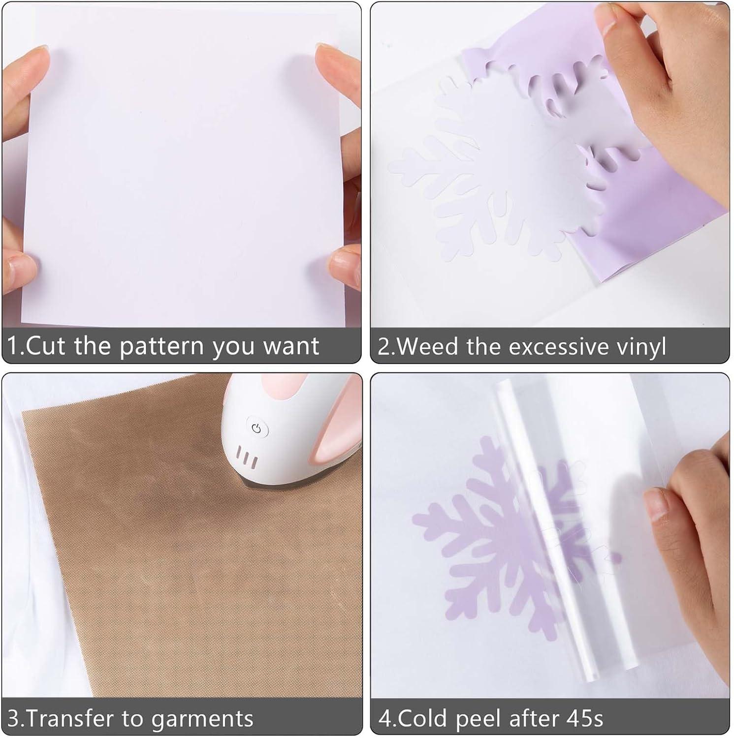 【EASY TO CUT & WEED & TRANSFER】Our white HTV black heat transfer vinyl will save your time which you may waste on each image or letter, because you can cut and weed easily through the designs just right.The white htv vinyl is sensitive to temperature and pressure, which can be heat transferred on any t-shirt easily