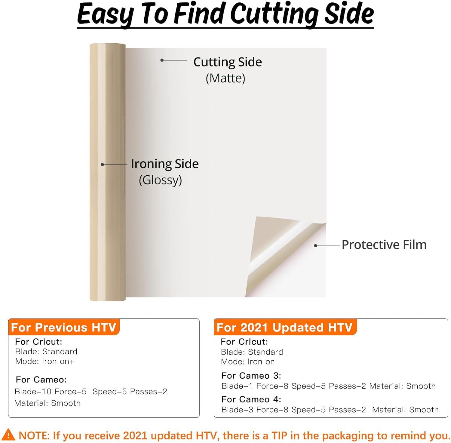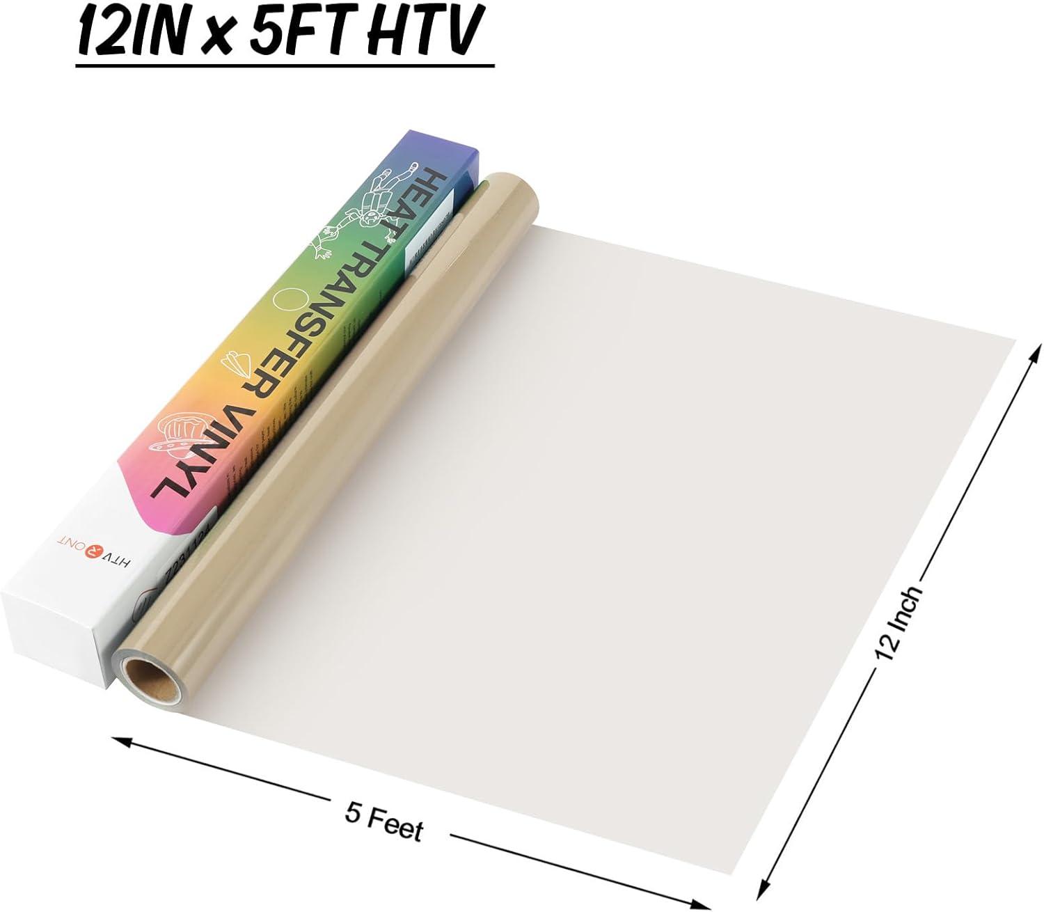 【12 inches x 5 Feet】 HTVRONT htv vinyl rolls are easy and convenient to cut into different size of art designs or logos or letters and perfect for 12×12″ and 12×24″ cutting mats. Our iron on vinyl are compatible for all cutter machines