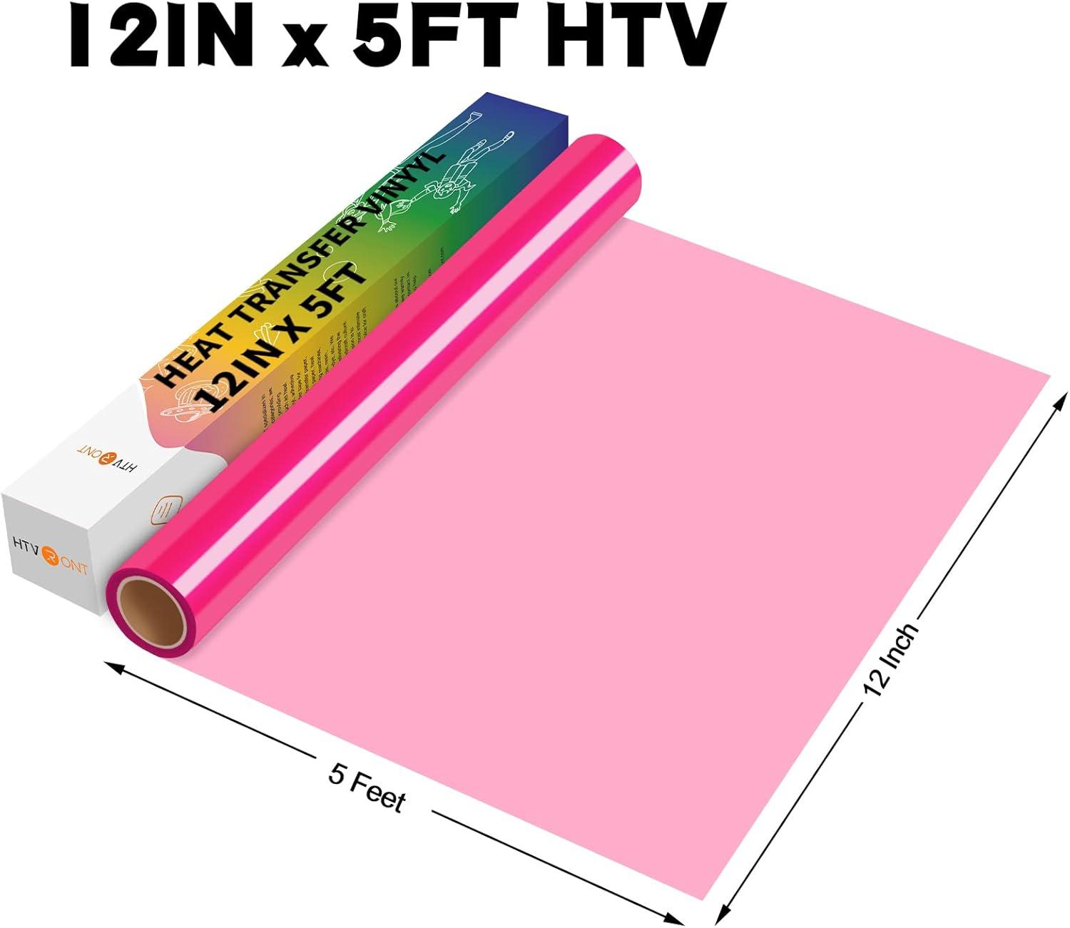 HTVRONT HTV Vinyl Rolls Heat Transfer Vinyl - 12" x 5ft Aqua Blue HTV Vinyl for Shirts, Iron on Vinyl for All Cutter Machine - Easy to Cut & Weed for Heat Vinyl Design (Aqua Blue)(Neon Pink)